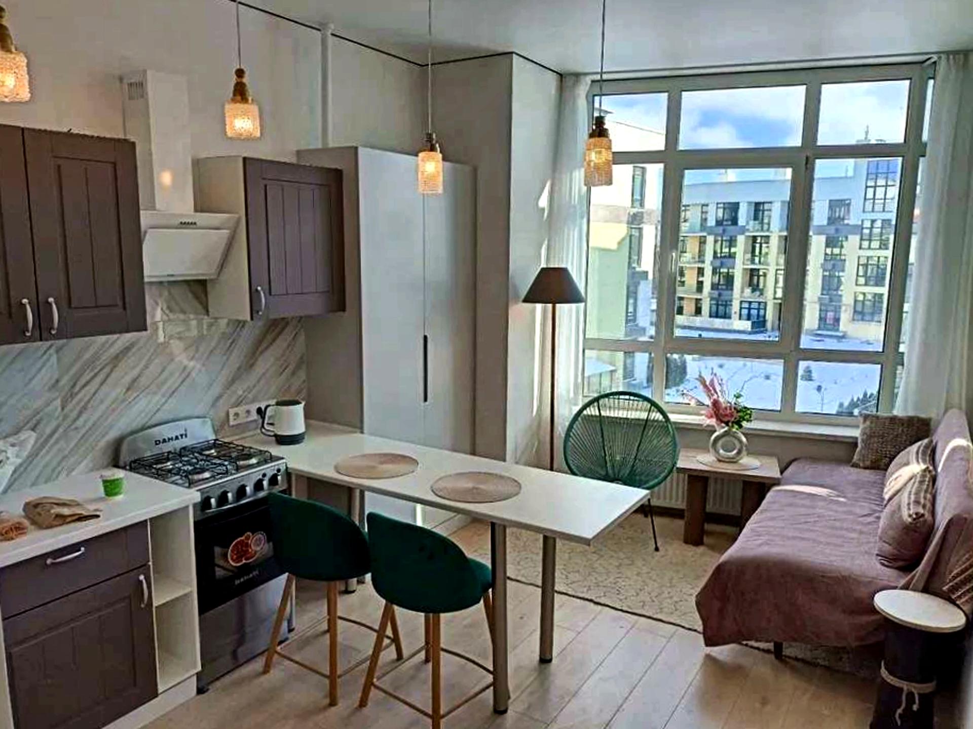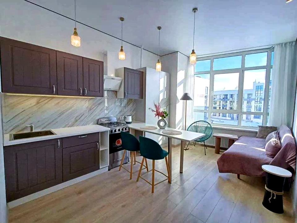 В квартирі 2 кімнати, Технологія будівництва - Монолітно-каркасна, Тип будинку - Спец. проект. Є газ, кухонна плита газова. Є балкон. Будинок побудований в 2021 році. Загальний стан квартири - З ремонтом. Гаряча вода - газовий котел. Кількість санвузлів: 1. Інтернет оптоволоконний. Працює без світла - вода, газ, опалення, інтернет, ліфт. Тип кухні - окрема кухня. Кількість спален: 1. Є підземний паркінг, доступний як укриття. Інфраструктура території: дитячий майданчик, спортивний майданчик, виокремлена зона для вигулу тварин, двір без авто. Комісія за послуги 50 %