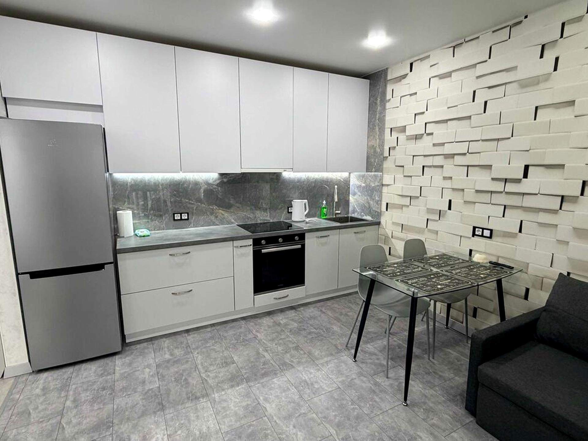 Квартира стильна, і дуже затишна, з сучасним дизайнерським ремонтом, повністю мебльована та укомплектована необхідною побутовою технікою та меблями: двоспальне ліжко з ортопедичним матрацом, гостьовий диван, шафа-купе, ТV, холодильник, варильна поверхня, духова шафа, пральна машина, 2 кондиц. тепла та води.