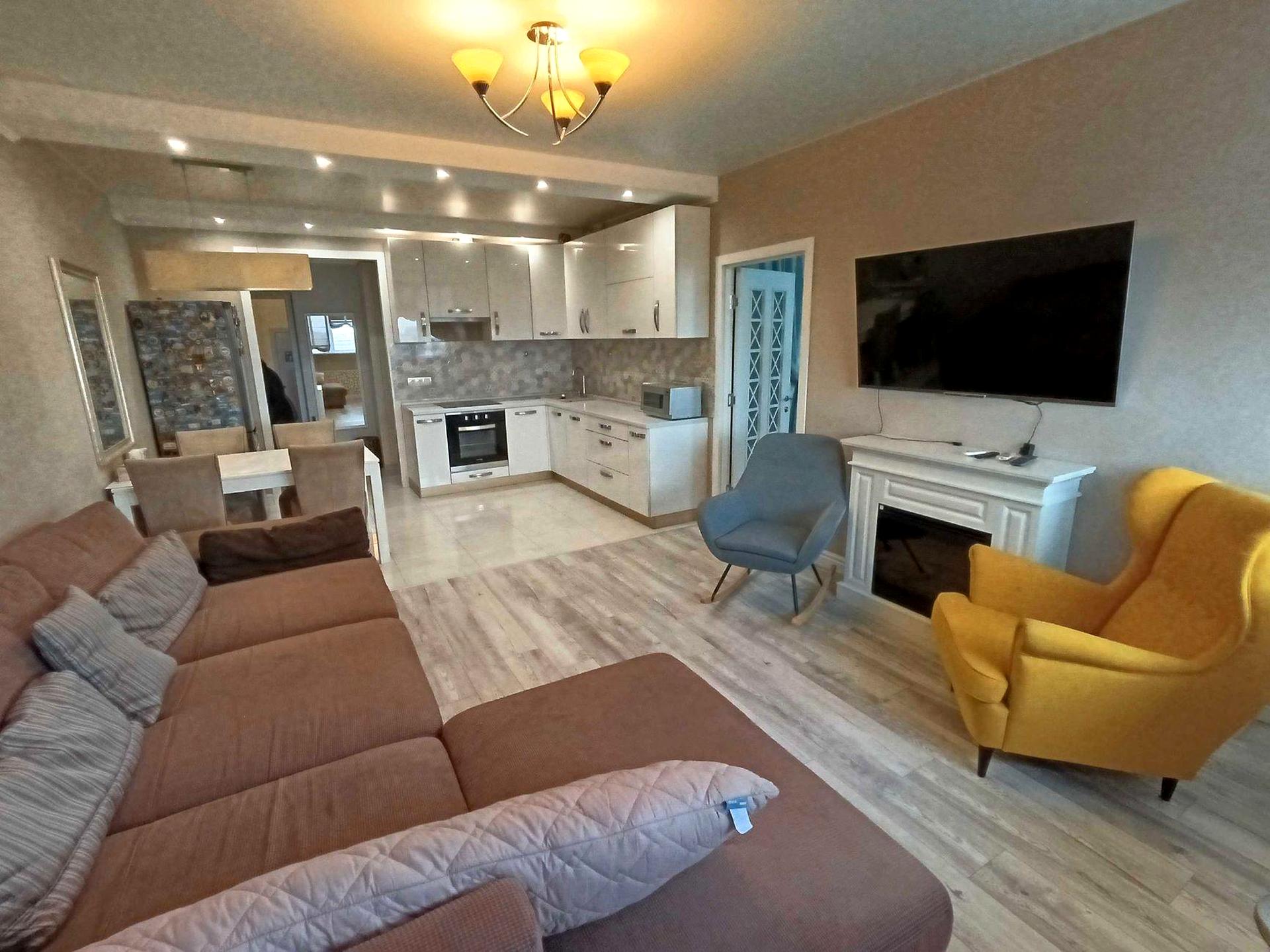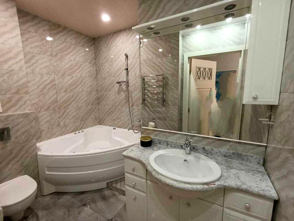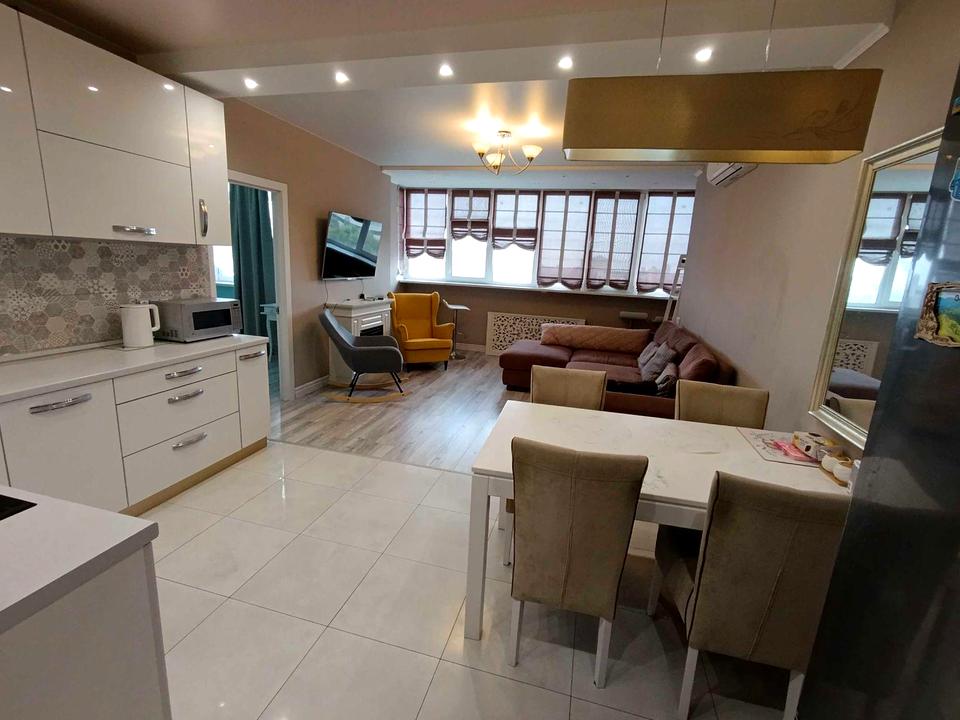 Квартира розміщена на 19-му поверсі. Оснащена всіма необхідними меблями та побутовою технікою, теплою підлогою (в санвузлах, кухні та вітальні), 2 кондиціонери, електрокамін, ТВ 55 дюймів,Wi-fi, посудомийна та пральні машини, індукційна варильна поверхня, духовка, мікрохвильовка, чайник, холодильник, в санвузлах душова та гідромасажна ванна, багато місць длля зберігання.