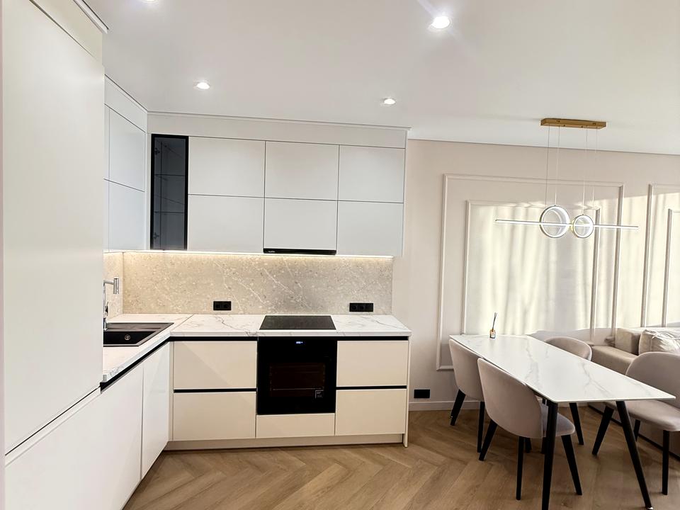 Укомплектована меблями та технікою: посудомийна машина, холодильник, варильна поверхня, духова шафа, телевізор, бойлер, пральна машина автомат, кондиціонер тільки в кухні-студії.