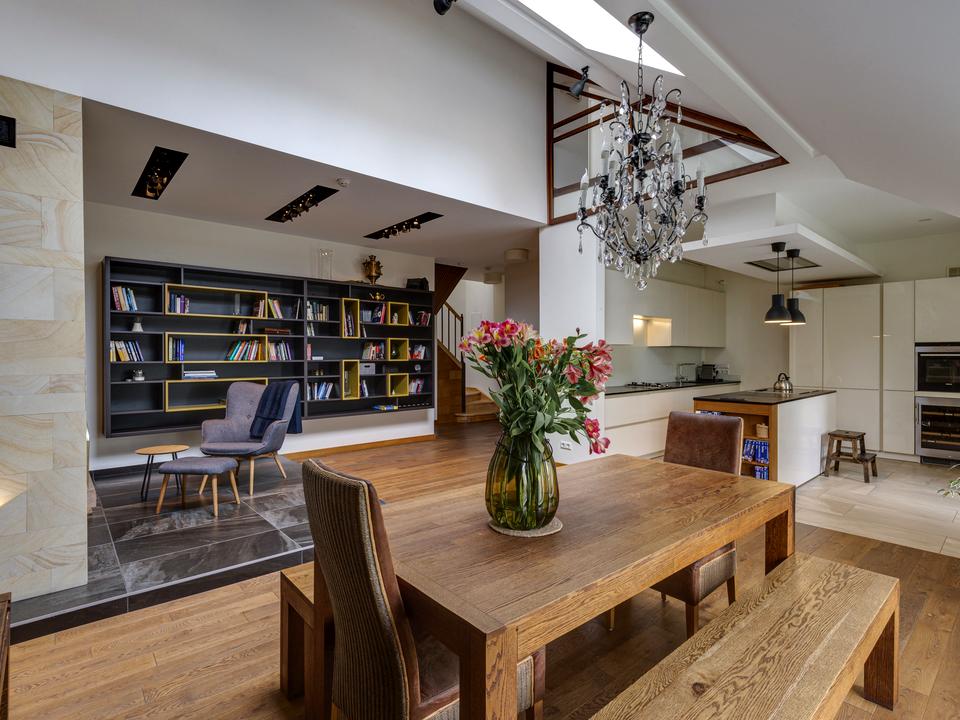 Простора 2-рівнева квартира зі стильним ремонтом у скандинавському стилі, розташована в дореволюційному будинку неподалік Золотих Воріт та готелю «Опера».