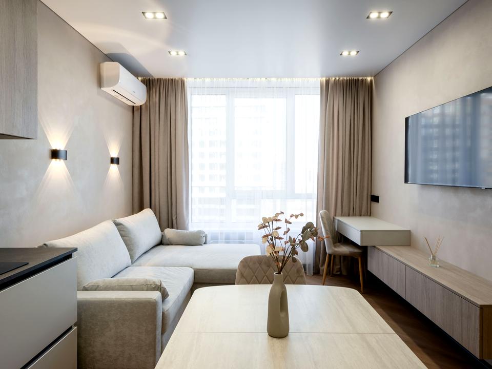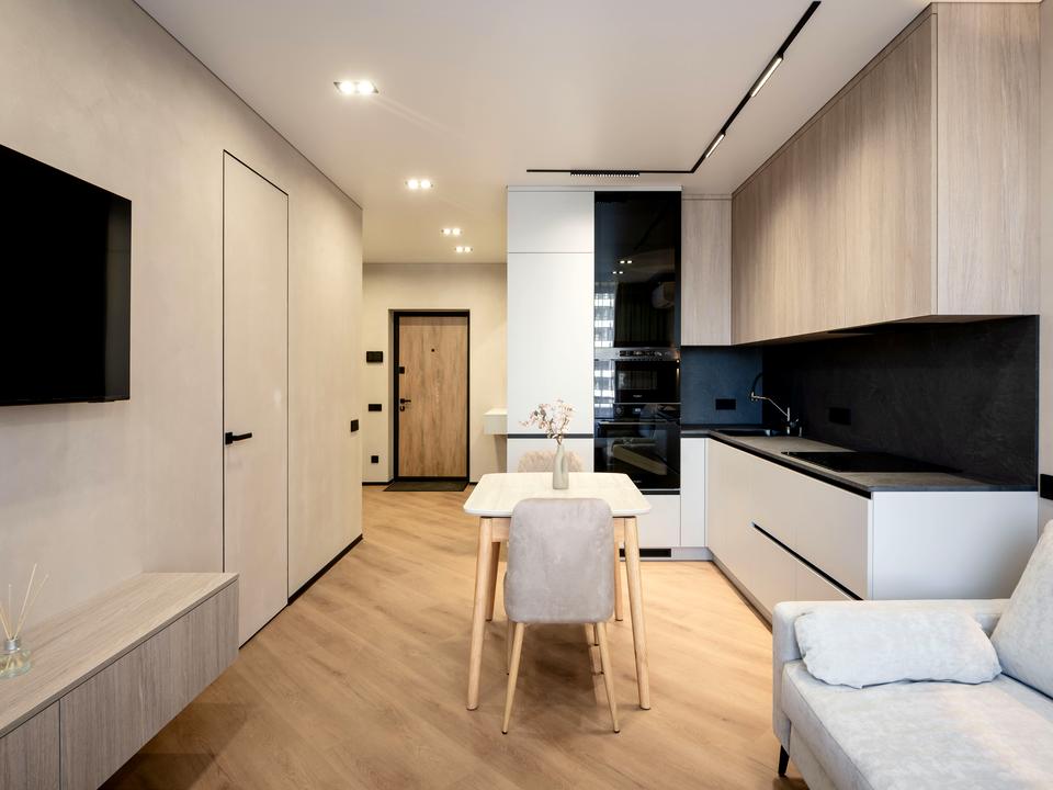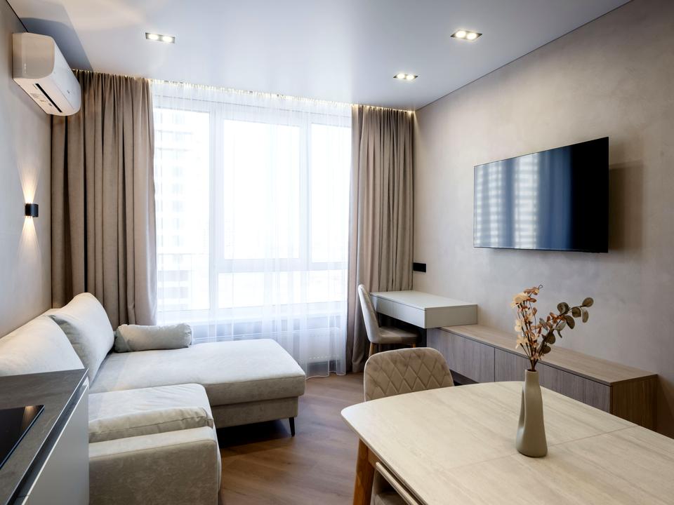 В квартирі 1 кімната, висота стелі 2.7 метра, Технологія будівництва - Монолітно-каркасна, Тип будинку - Спец. проект. Немає газу, кухонна плита електрична. Немає балкона. У квартирі є Телевізор, Праска, Підігрів підлоги, Кондиціонер, Пральна машина, Сушильна машина, Душова кабіна, Холодильник, Мікрохвильовка, Посудомийна машина. Будинок побудований в 2025 році. Загальний стан квартири - З ремонтом. Безбар'єрність: ліфт, пристосований до крісла колісного. Гаряча вода - електричний бойлер. Кількість санвузлів: 1. Інтернет оптоволоконний. Працює без світла - вода, опалення, інтернет, ліфт. Тип кухні - окрема кухня. Кількість спален: 1. Є підземний паркінг, доступний як укриття. Інфраструктура території: двір без авто. Комісія за послуги 50 %
