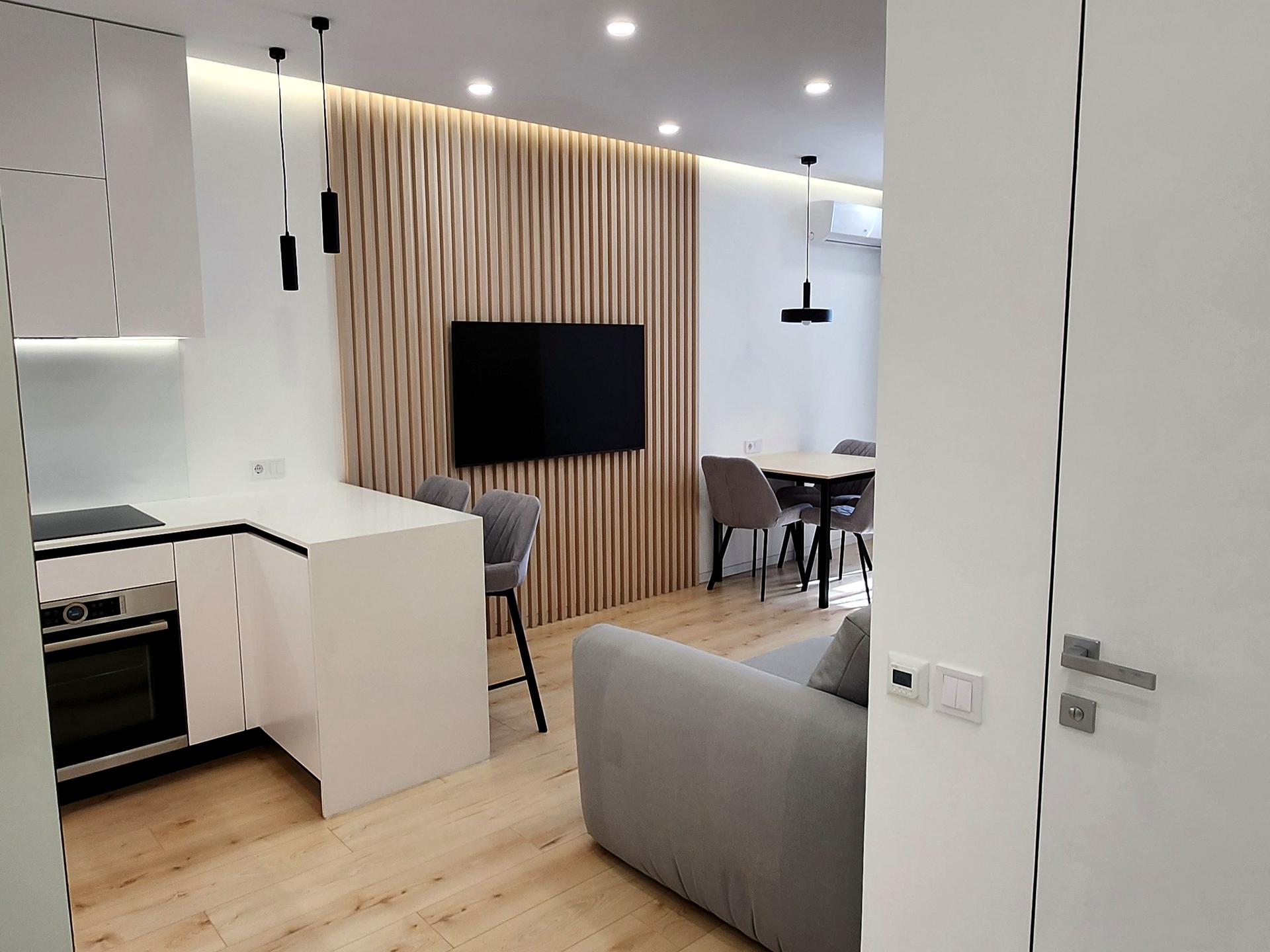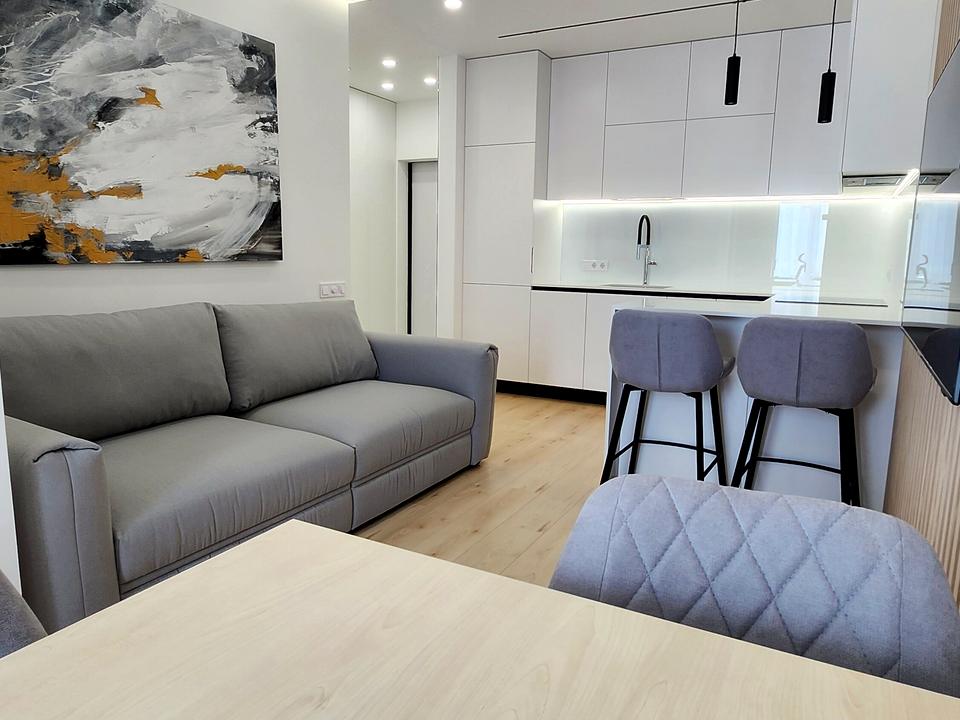 В квартирі 2 кімнати, висота стелі 2.7 метра, Технологія будівництва - Монолітно-каркасна, Тип будинку - Спец. проект. Немає газу, кухонна плита електрична. Є балкон. У квартирі є Телевізор, Кабельне ТБ, Супутникове ТБ, Праска, Підігрів підлоги, Камін, Кондиціонер, Пральна машина, Сушильна машина, Душова кабіна, Ванна, Джакузі, Холодильник, Мікрохвильовка, Посудомийна машина, Посуд, Сигналізація. Будинок побудований в 2018 році. Загальний стан квартири - З ремонтом. Гаряча вода - електричний бойлер. Кількість санвузлів: 1. Інтернет бездротовий. Працює без світла - вода, газ, опалення, інтернет, ліфт. Тип кухні - кухня-студія. Кількість спален: 1. Є підземний паркінг, доступний як укриття. Інфраструктура території: дитячий майданчик, спортивний майданчик, виокремлена зона для вигулу тварин, двір без авто. Комісія за послуги 50 %