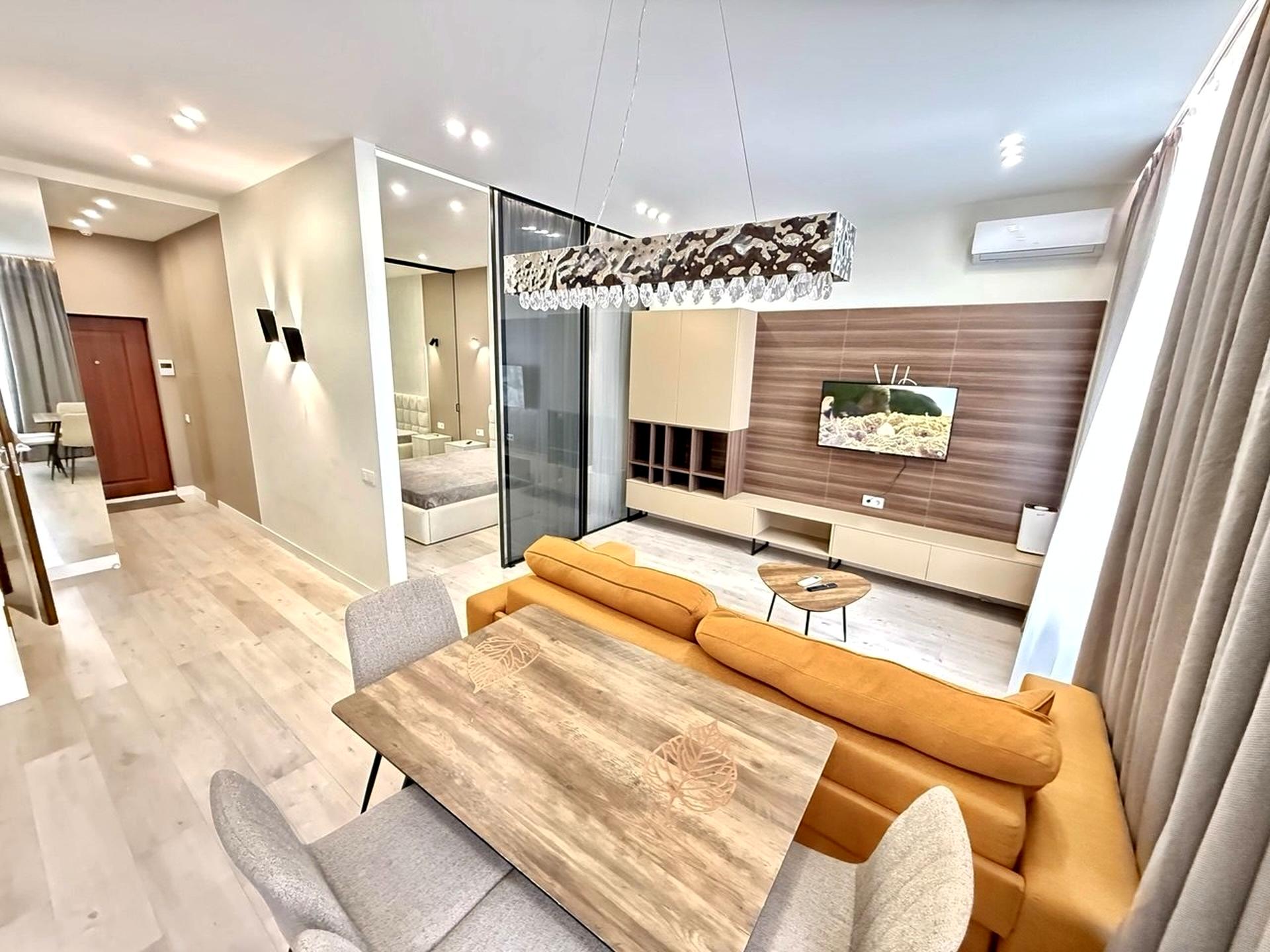 - Квартира оснащена всім необхідним для комфортного проживання, укомплектована технікою та меблями (холодильник, варильна поверхня, духова шафа, витяжка, пральна/сушильна машинка, два телевізора,диван(розкладається), два кондиціонера , ліжко з ортопедичним матрацом.