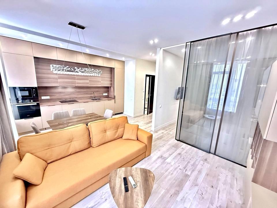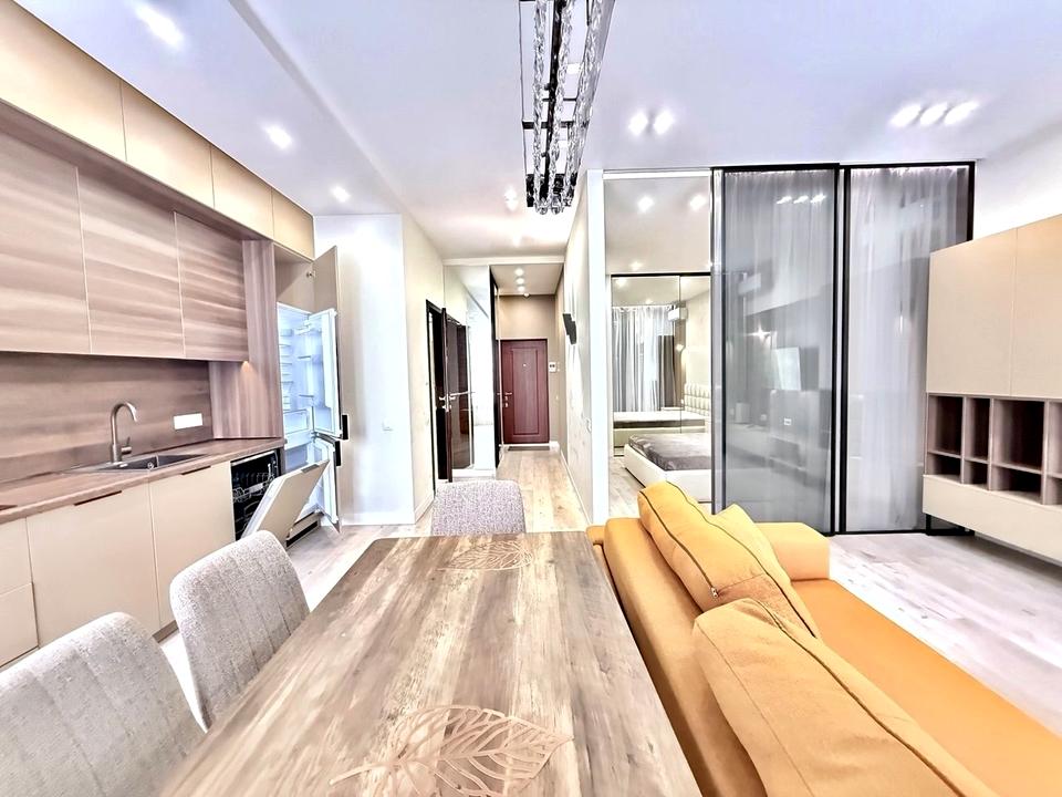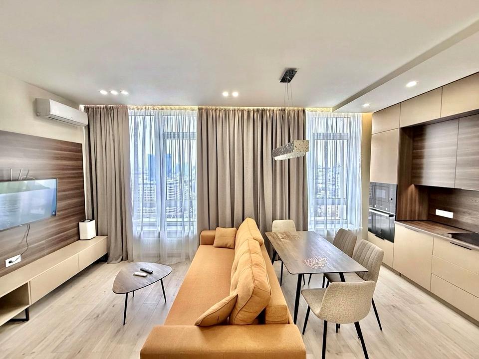 В квартирі 1 кімната, висота стелі 3 метра, Технологія будівництва - Монолітно-каркасна, Тип будинку - Спец. проект. Немає газу, кухонна плита електрична. Немає балкона. У квартирі є Телевізор, Підігрів підлоги, Кондиціонер, Пральна машина, Сушильна машина, Душова кабіна, Холодильник, Мікрохвильовка, Посудомийна машина. Будинок побудований в 2019 році. Загальний стан квартири - З ремонтом. Гаряча вода - електричний бойлер. Кількість санвузлів: 1. Інтернет оптоволоконний. Працює без світла - вода, опалення, інтернет, ліфт. Тип кухні - кухня-студія. Кількість спален: 1. Без комісії