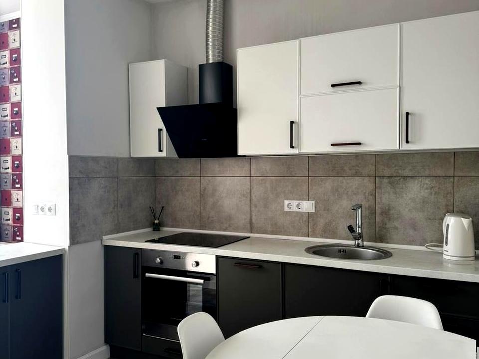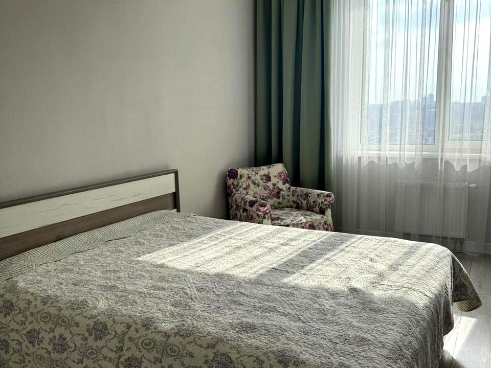 Сучасний будинок, стильний ремонт. Квартира повністю мебльована, в квартирі є вся необхідна побутова техніка. На все встановлені лічильники. У спальні двоспальне ліжко, на кухні розкладний диванчик. Ванна кімната: душова кабіна. Є просторий гардероб. З вікон відкривається чудовий краєвид на місто.