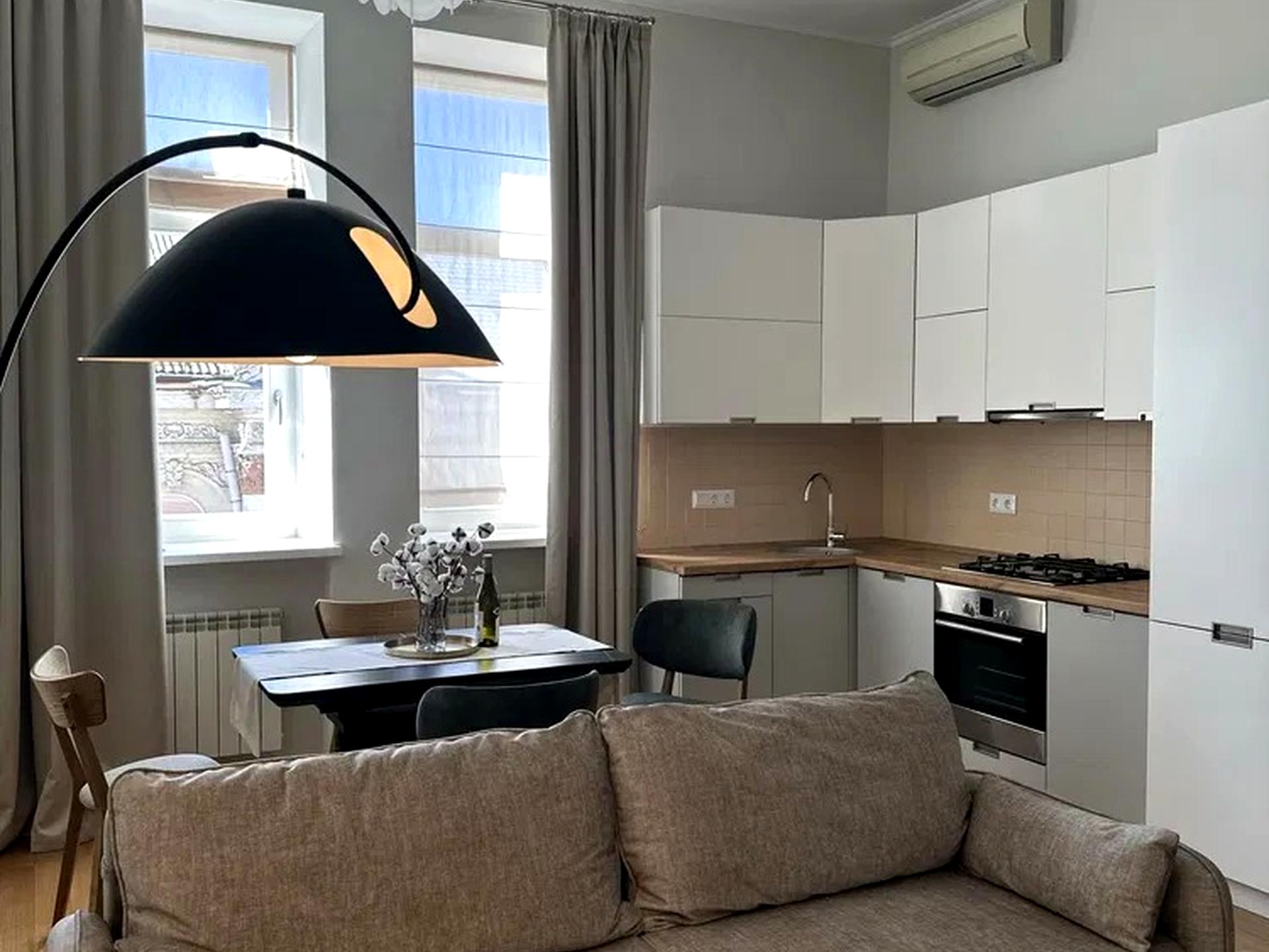 В квартирі 2 кімнати, висота стелі 4.2 метра, Технологія будівництва - Цегляна, Тип будинку - Дореволюційний. У квартирі є Кондиціонер, Пральна машина, Холодильник, Посудомийна машина. Будинок побудований в 1912 році. Загальний стан квартири - З ремонтом. Комісія за послуги 50 %