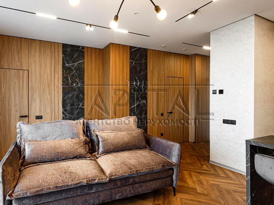 - Стильну вітальню з розкладним диваном-ліжком, який ідеально підходить як для відпочинку, так і для прийому гостей.