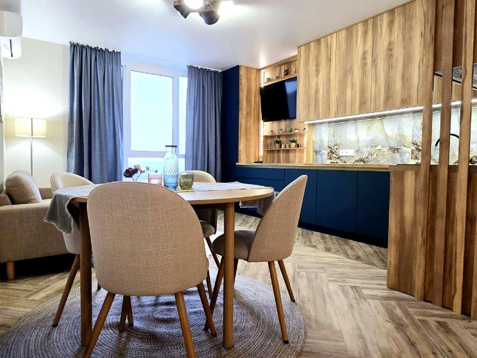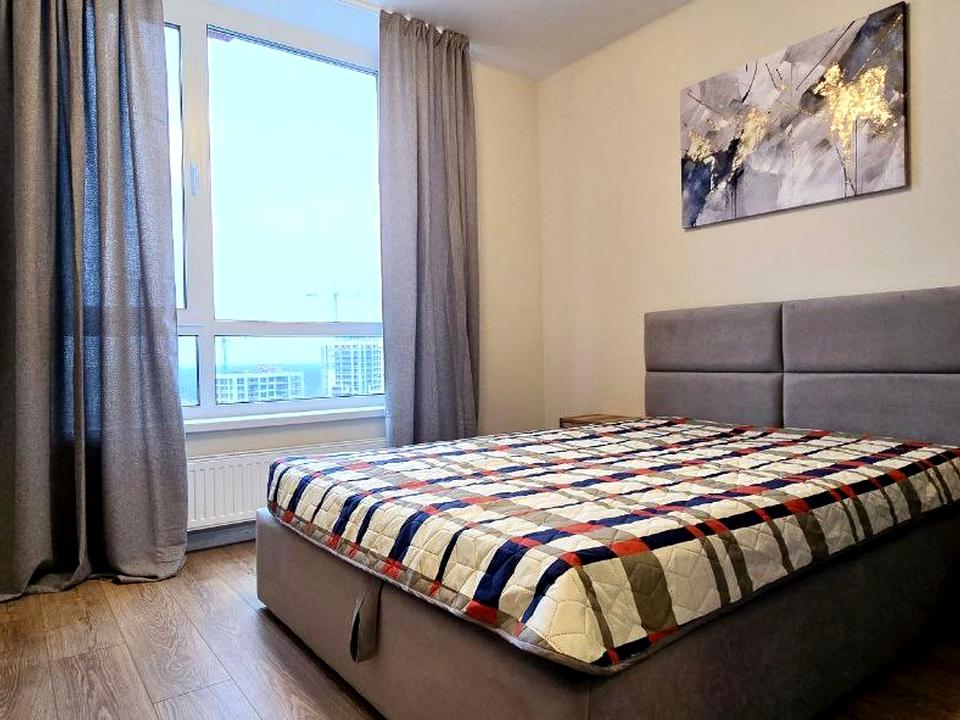 Новий ремонт! Затишна і світла квартира з вікнами в підлогу! Площа: 68 м². Поверх: 18/24. Планування: дві окремі кімнати, простора кухня-вітальня, санвузол суміжний з підігрівом підлоги, пральня. Квартира повністю укомплектована меблями і технікою. Опалення: централізоване. Швидкісний інтернет.