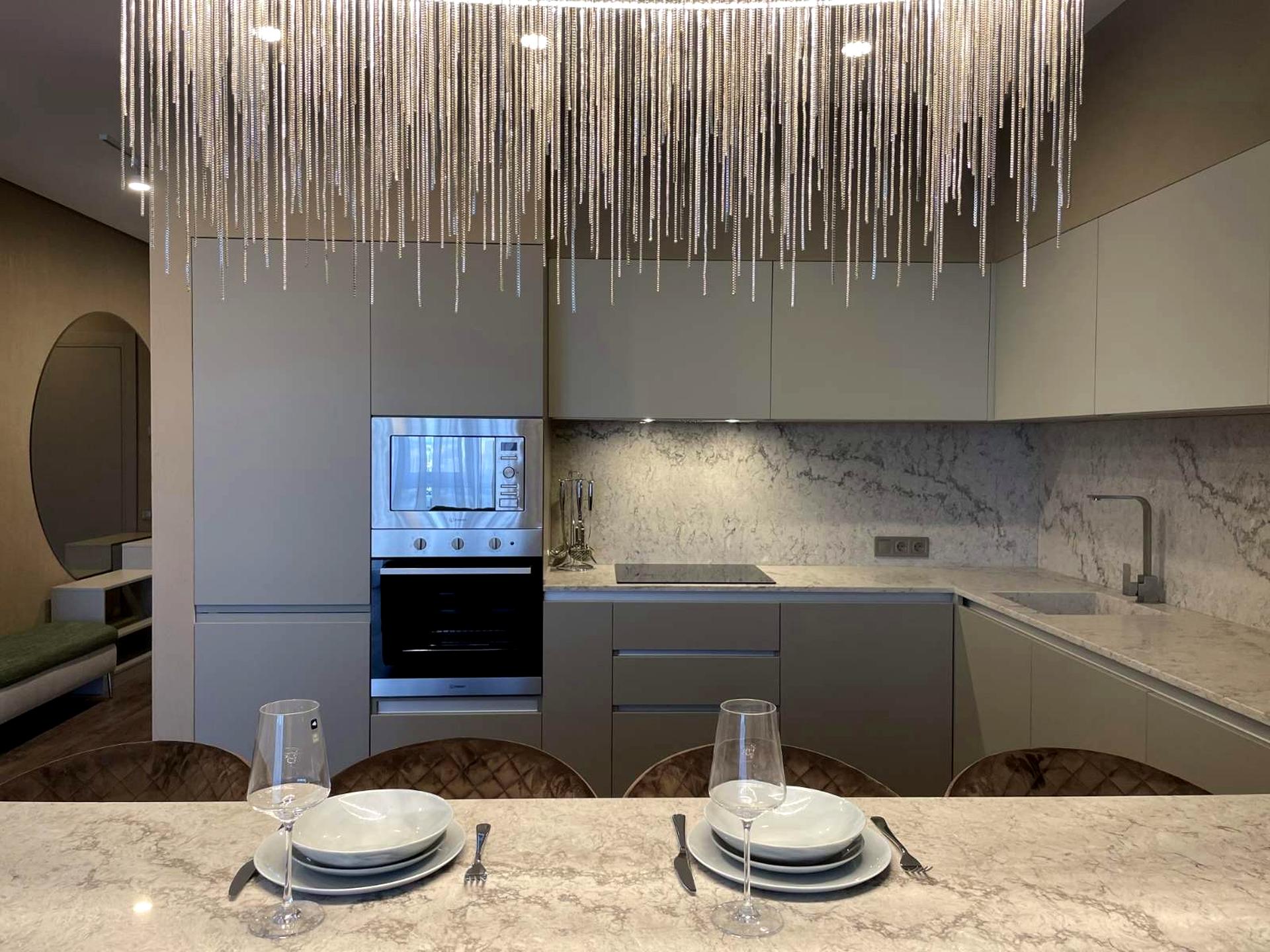 Квартира виконана у стильному сучасному дизайні, повністю готова для комфортного проживання. Новий житловий комплекс із високим рівнем сервісу та безпеки.