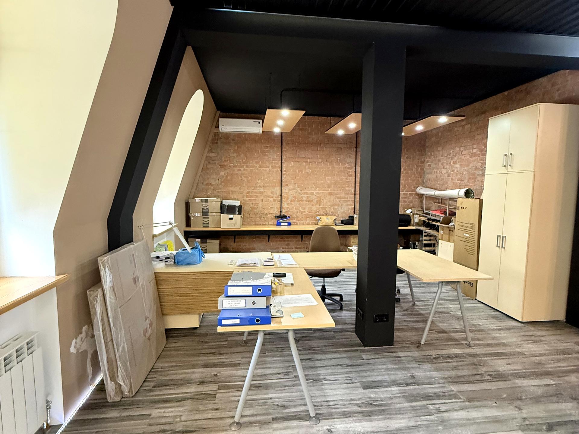 Загальна площа 85.9 квадрати, 2 окремі кабінети, великий опенспейс, міні кухня, два санвузли. У кожному кабінеті встановлено кондиціонер. Раціональне планування і ергономіка простору. З меблями.