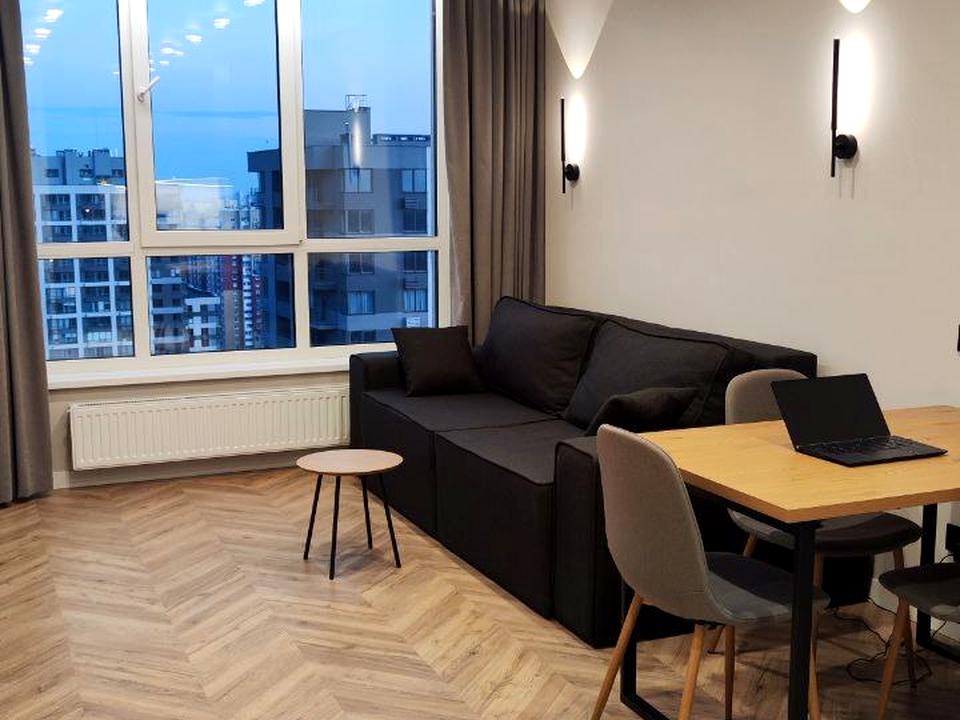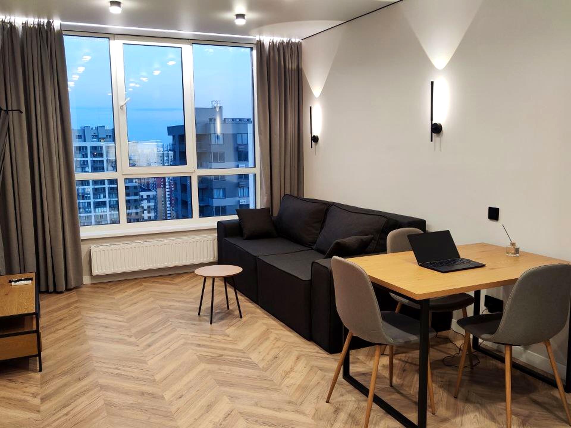 В квартирі 1 кімната, висота стелі 2.75 метра, Технологія будівництва - Блочна, Тип будинку - Спец. проект. Немає газу, кухонна плита електрична. Немає балкона. У квартирі є Телевізор, Кондиціонер, Пральна машина, Душова кабіна, Холодильник, Мікрохвильовка, Посудомийна машина. Будинок побудований в 2024 році. Загальний стан квартири - З ремонтом. Безбар'єрність: пандус, вхід у будинок на рівні землі, дверні отвори в будинку шириною понад 0.9 м. Гаряча вода - електричний бойлер. Кількість санвузлів: 1. Інтернет оптоволоконний. Працює без світла - вода, інтернет, ліфт, резервне живлення квартири (акумулятори). Тип кухні - кухня-студія. Кількість спален: 1. Немає підземного паркінгу, доступного як укриття. Інфраструктура території: дитячий майданчик, спортивний майданчик, виокремлена зона для вигулу тварин, двір без авто