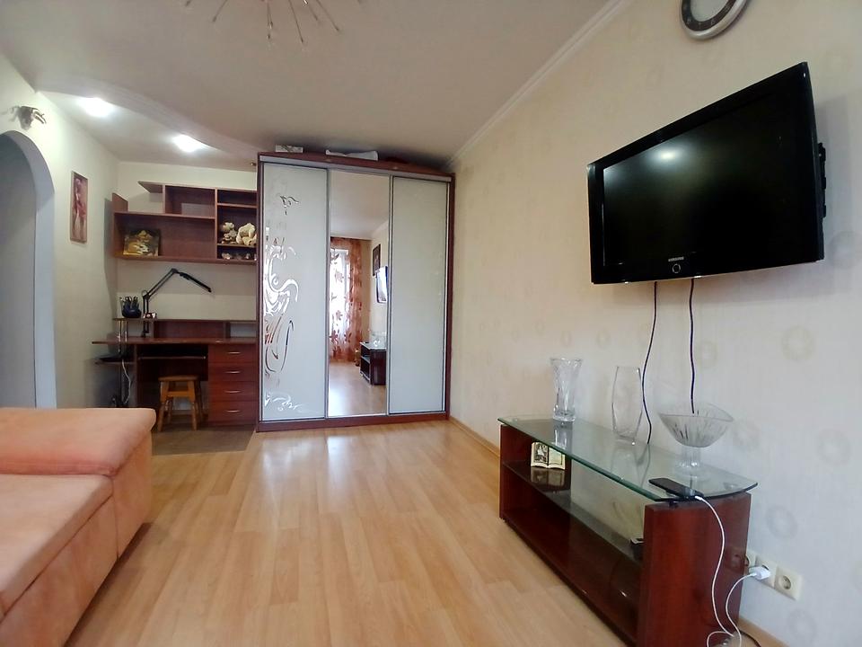 В квартирі 1 кімната, висота стелі 2.55 метра, Технологія будівництва - Цегляна, Тип будинку - Хрущівка. Є газ, кухонна плита газова. Є балкон. У квартирі є Телевізор, Кабельне ТБ, Праска, Кондиціонер, Пральна машина, Ванна, Холодильник, Посуд. Будинок побудований в 1962 році. Загальний стан квартири - З ремонтом. Гаряча вода - електричний бойлер. Кількість санвузлів: 1. Інтернет дротовий (кабельний). Працює без світла - вода, газ, опалення, інтернет. Тип кухні - окрема кухня. Кількість спален: 1. Інфраструктура території: дитячий майданчик, спортивний майданчик. Комісія за послуги 50 %
