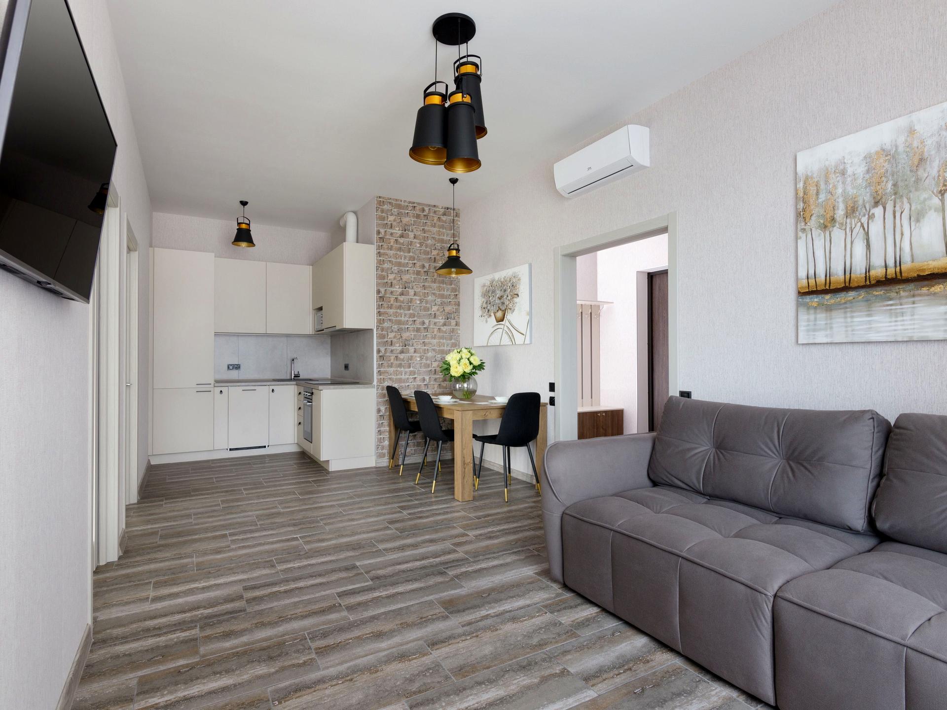 • Планування: кухня-вітальня + спальня + кабінет