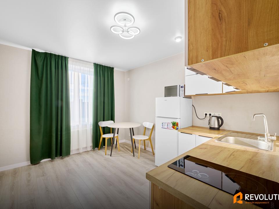 В квартирі 1 кімната, висота стелі 2.7 метра, Технологія будівництва - Цегляна, Тип будинку - Спец. проект. Немає газу, кухонна плита електрична. Немає балкона. Будинок побудований в 2021 році. Загальний стан квартири - З ремонтом. Гаряча вода - електричний бойлер. Кількість санвузлів: 1. Інтернет оптоволоконний. Працює без світла - вода, інтернет, ліфт, резервне живлення квартири (акумулятори). Тип кухні - кухня-студія. Кількість спален: 1. Немає підземного паркінгу, доступного як укриття. Інфраструктура території: спортивний майданчик. Без комісії