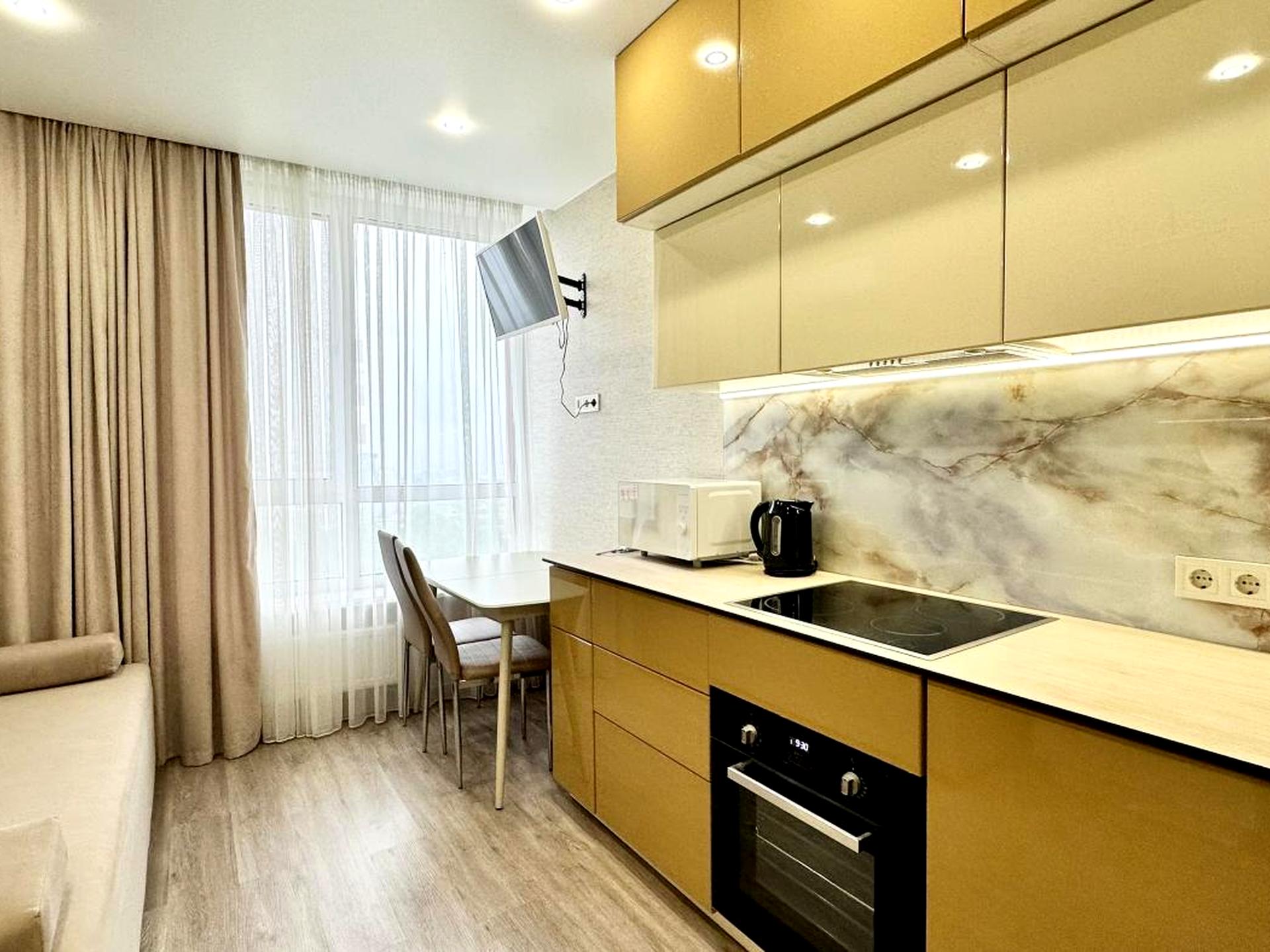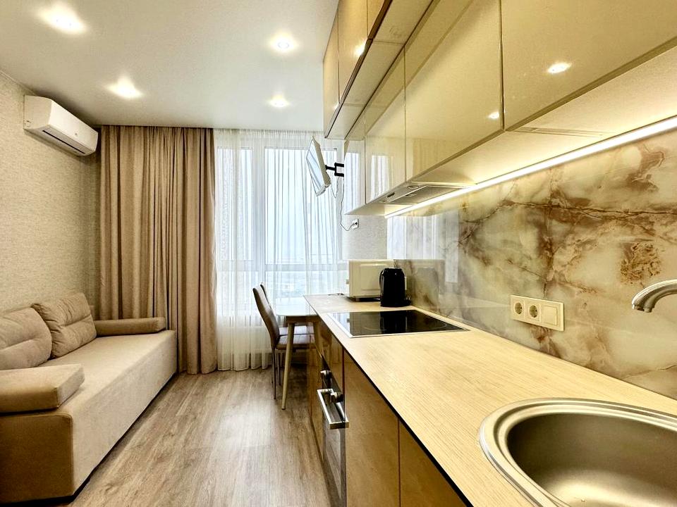 В квартирі 2 кімнати, висота стелі 2.7 метра, Технологія будівництва - Блочна, Тип будинку - Спец. проект. Кухонна плита електрична. У квартирі є Телевізор, Кондиціонер, Пральна машина, Душова кабіна, Холодильник. Будинок побудований в 2021 році. Загальний стан квартири - З ремонтом. Кількість санвузлів: 1. Тип кухні - кухня-студія. Кількість спален: 1. Комісія за послуги 50 %