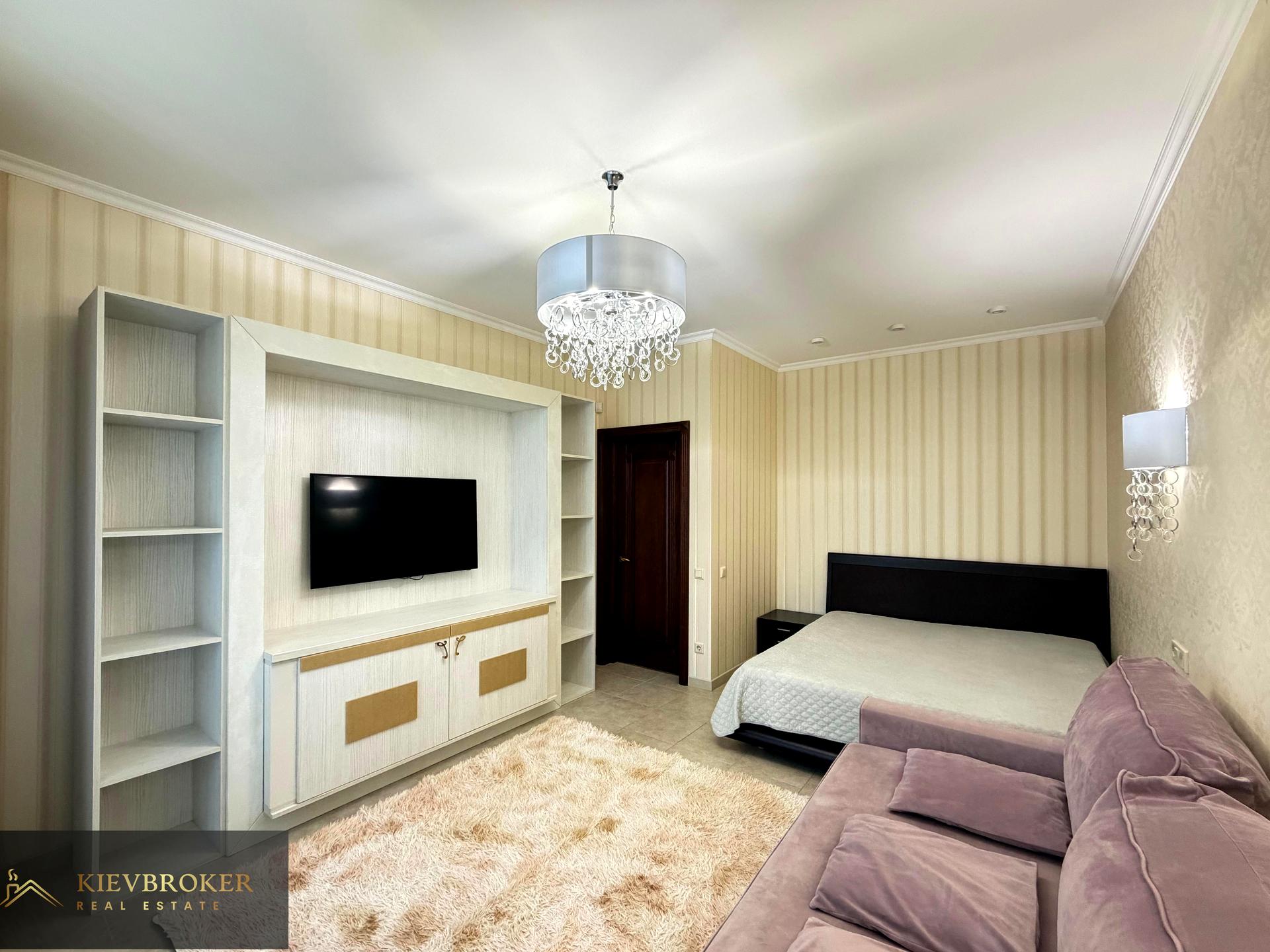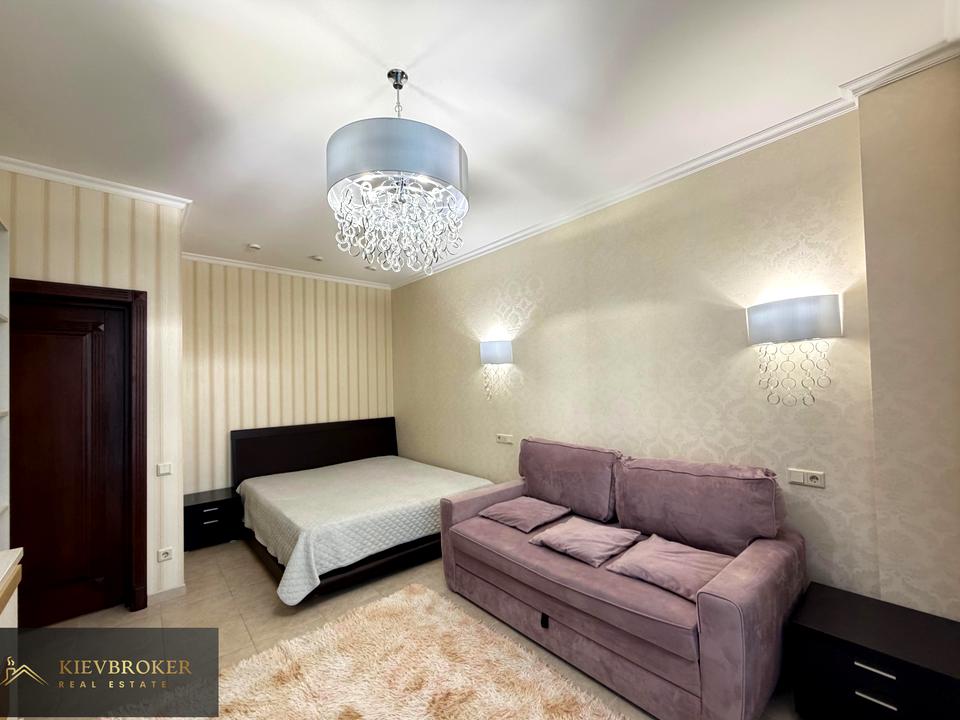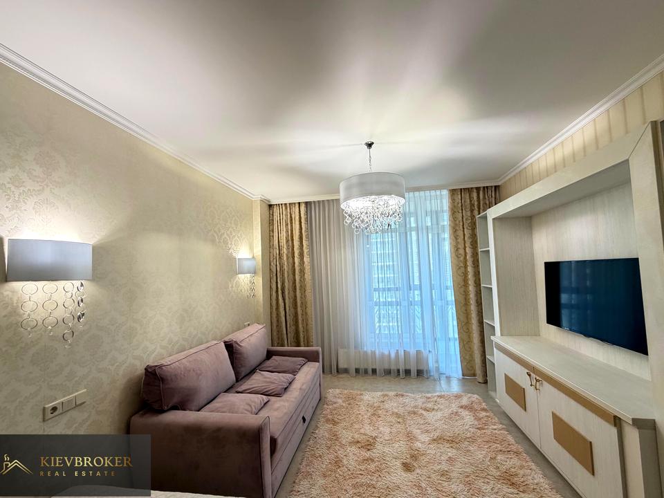 Велика кухня-вітальня, спальня кімната, диван розклданий, гардеробна, шафи купе, санвузел з ваною, панорамний балкон