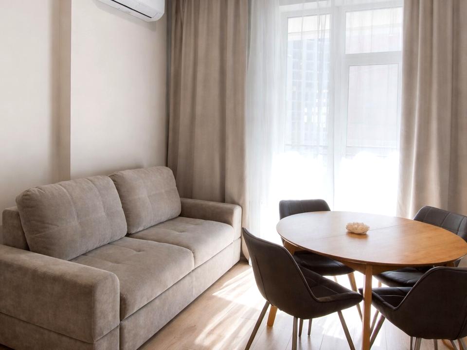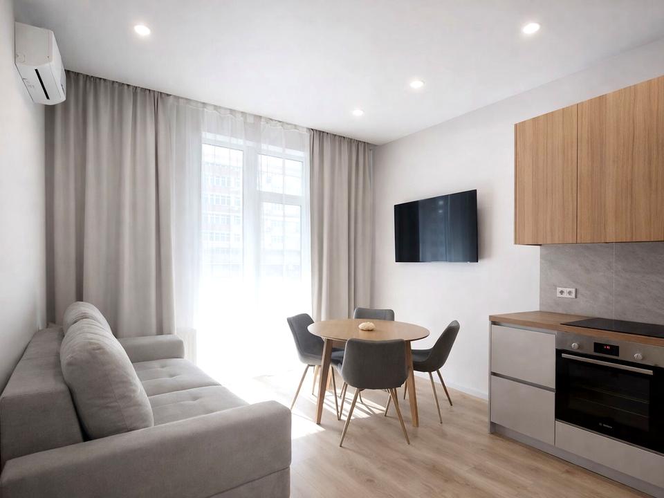В квартирі 1 кімната, висота стелі 3 метра, Технологія будівництва - Монолітно-каркасна, Тип будинку - Спец. проект. Немає газу, кухонна плита електрична. Є балкон. У квартирі є Телевізор, Кондиціонер, Пральна машина, Душова кабіна, Холодильник, Посудомийна машина. Будинок побудований в 2019 році. Загальний стан квартири - З ремонтом. Гаряча вода - електричний бойлер. Кількість санвузлів: 1. Тип кухні - кухня-студія. Кількість спален: 1. Є підземний паркінг, доступний як укриття. Без комісії