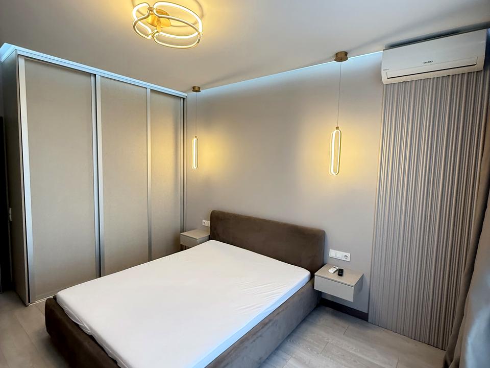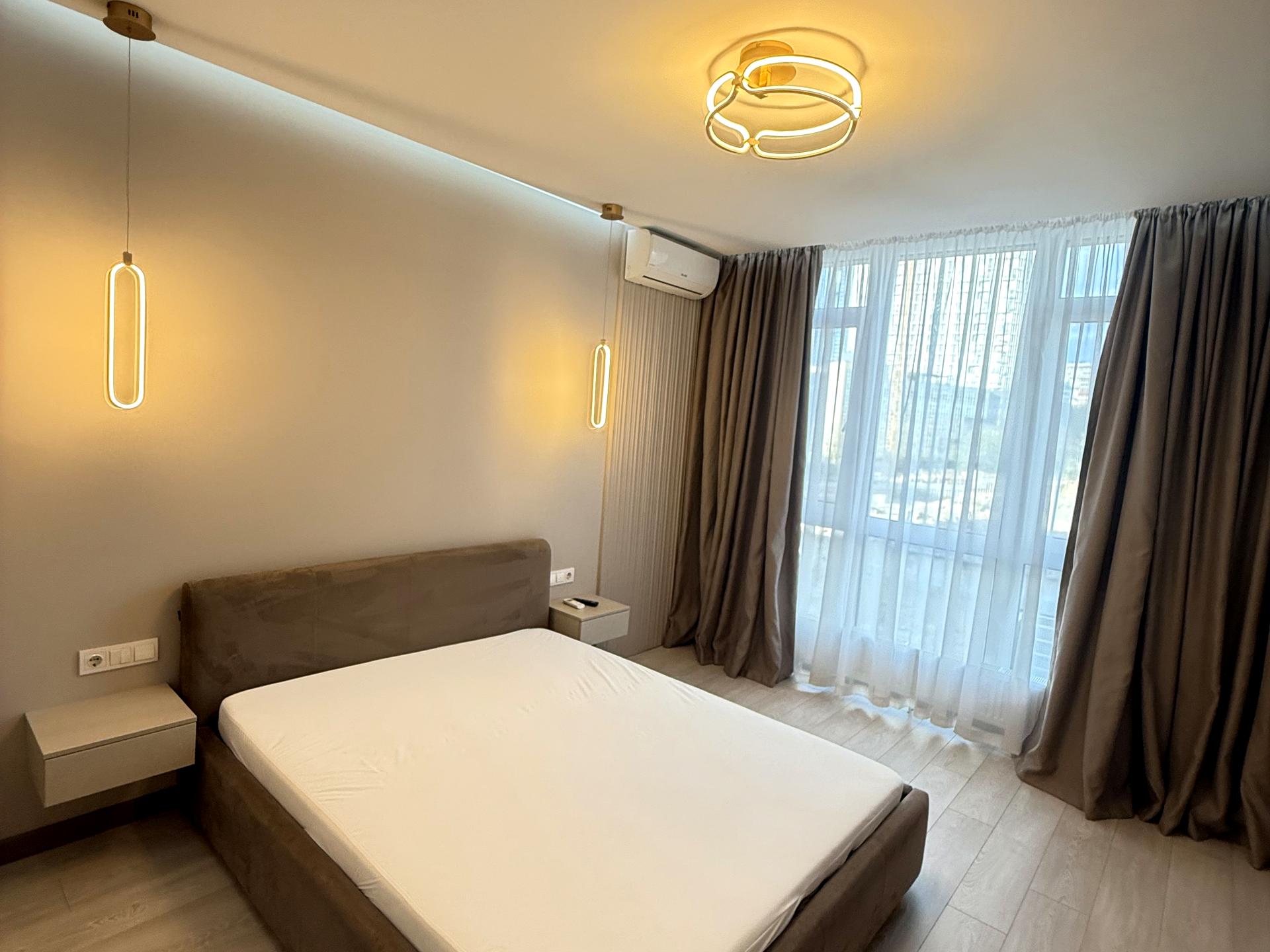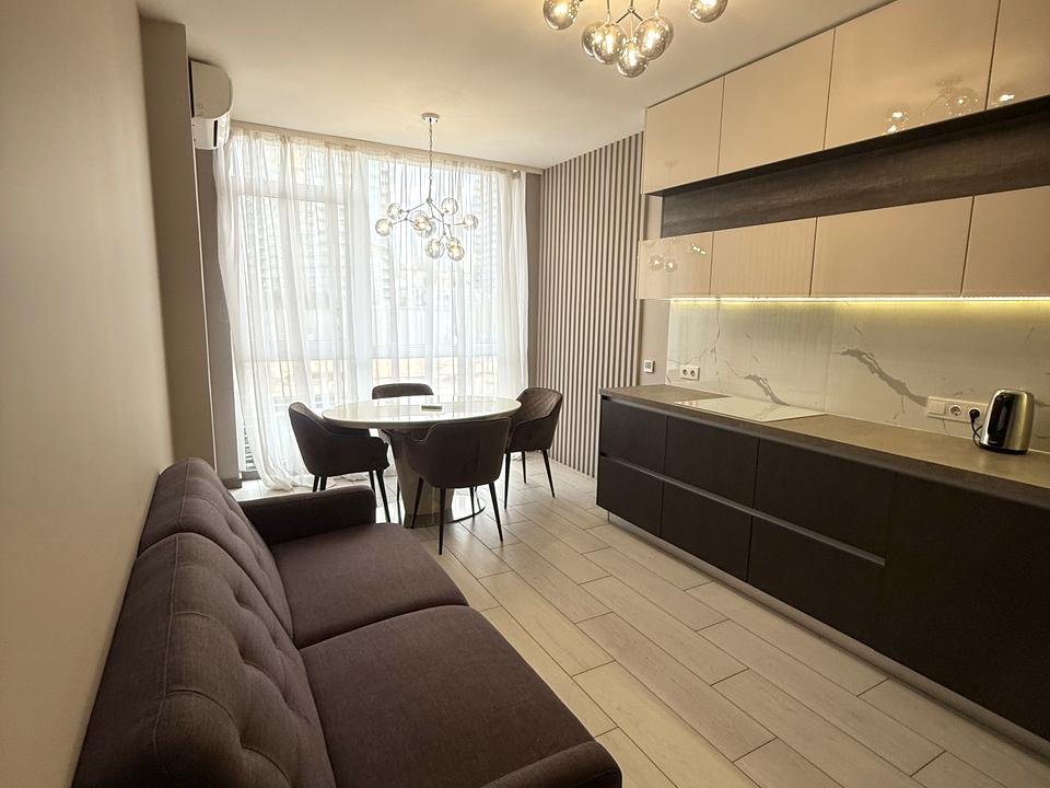 В квартирі 1 кімната, висота стелі 2.85 метра, Технологія будівництва - Монолітно-каркасна, Тип будинку - Спец. проект. Немає газу, кухонна плита електрична. Немає балкона. У квартирі є Телевізор, Підігрів підлоги, Кондиціонер, Пральна машина, Сушильна машина, Душова кабіна, Холодильник, Мікрохвильовка, Посудомийна машина, Сигналізація. Будинок побудований в 2017 році. Загальний стан квартири - З ремонтом. Гаряча вода - електричний бойлер. Кількість санвузлів: 1. Інтернет бездротовий. Працює без світла - вода, опалення, інтернет, ліфт. Тип кухні - кухня-студія. Кількість спален: 1. Є підземний паркінг, доступний як укриття. Інфраструктура території: дитячий майданчик, спортивний майданчик, виокремлена зона для вигулу тварин, двір без авто. Комісія за послуги 50 %