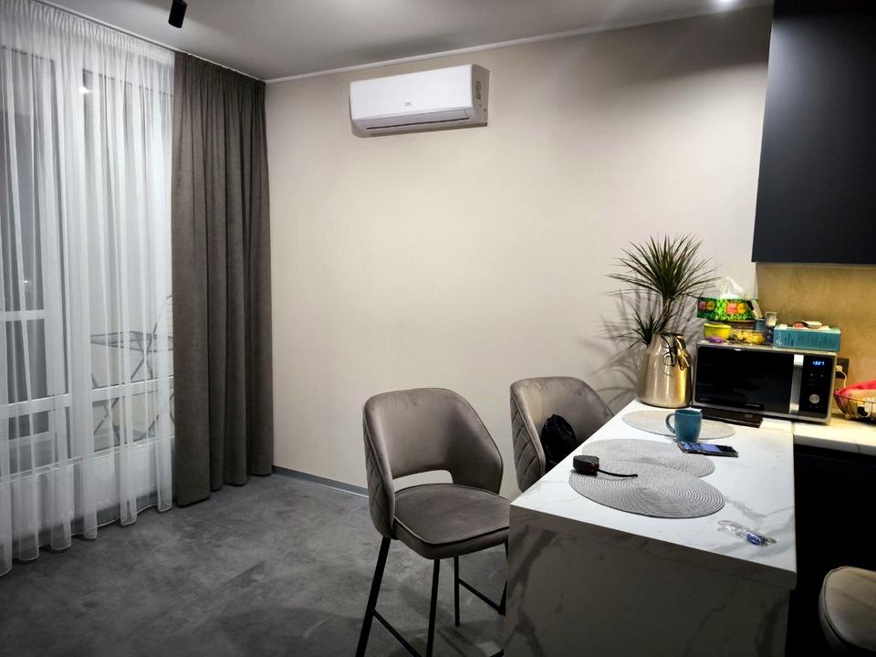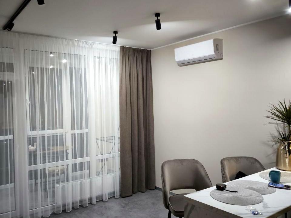 В квартирі 2 кімнати, висота стелі 2.7 метра, Технологія будівництва - Блочна, Тип будинку - Спец. проект. Кухонна плита електрична. Є балкон. У квартирі є Телевізор, Підігрів підлоги, Кондиціонер, Пральна машина, Ванна, Холодильник, Мікрохвильовка, Посудомийна машина. Будинок побудований в 2022 році. Загальний стан квартири - З ремонтом. Гаряча вода - електричний бойлер. Кількість санвузлів: 1. Інтернет оптоволоконний. Тип кухні - кухня-студія. Кількість спален: 1. Є підземний паркінг, доступний як укриття. Комісія за послуги 50 %