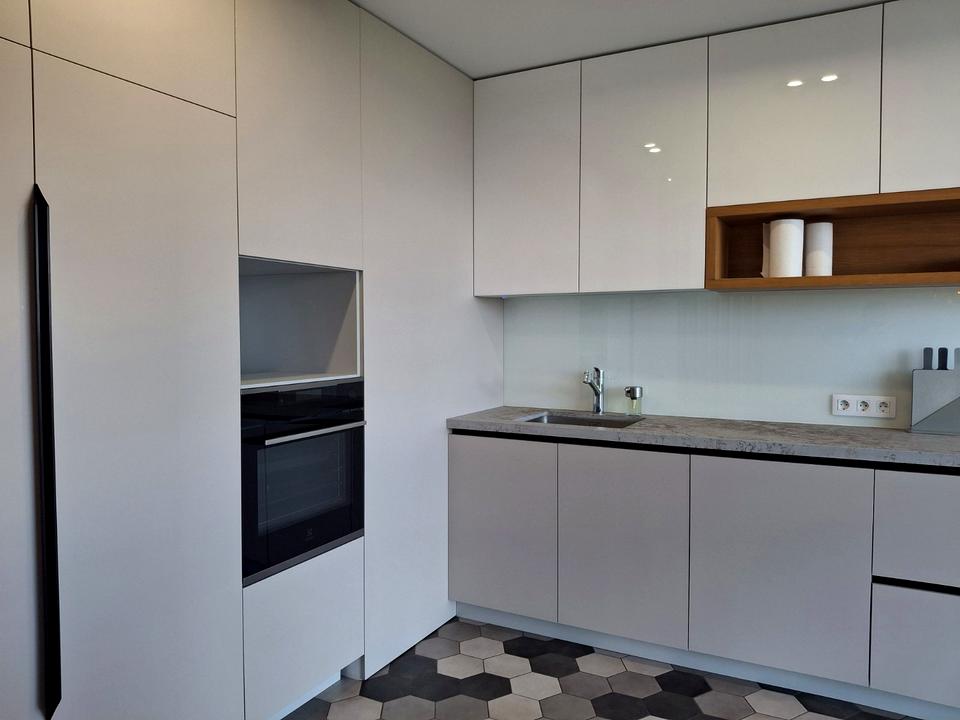 Технічне оснащення: Квартира повністю укомплектована преміальною побутовою технікою (зокрема системою кондиціонування, вбудованою духовою шафою та технікою Miele у пральній зоні) та авторськими меблями.