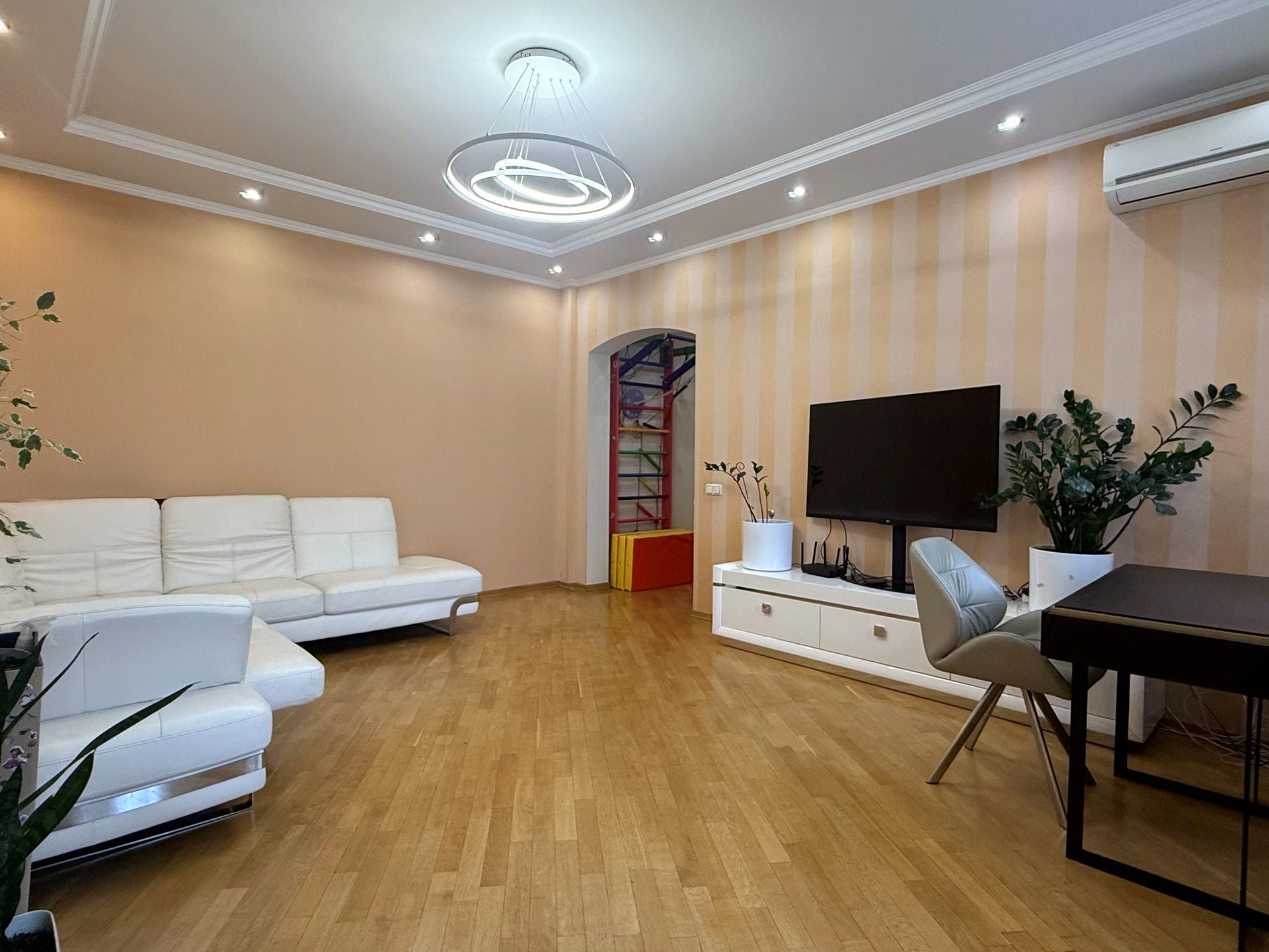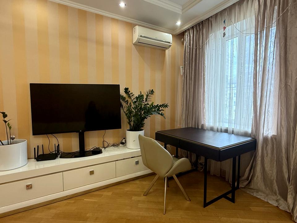 В квартирі 3 кімнати, висота стелі 3.2 метра, Технологія будівництва - Цегляна, Тип будинку - Сталінка. Є газ, кухонна плита газова. Є балкон. У квартирі є Телевізор, Кабельне ТБ, Праска, Підігрів підлоги, Кондиціонер, Пральна машина, Сушильна машина, Душова кабіна, Джакузі, Холодильник, Мікрохвильовка, Посудомийна машина, Посуд, Сигналізація. Будинок побудований в 1960 році. Загальний стан квартири - З ремонтом. Гаряча вода - газова колонка. Кількість санвузлів: 1. Інтернет оптоволоконний. Працює без світла - вода, газ, опалення, інтернет. Тип кухні - окрема кухня. Кількість спален: 2. Інфраструктура території: дитячий майданчик, спортивний майданчик, виокремлена зона для вигулу тварин. Комісія за послуги 50 %
