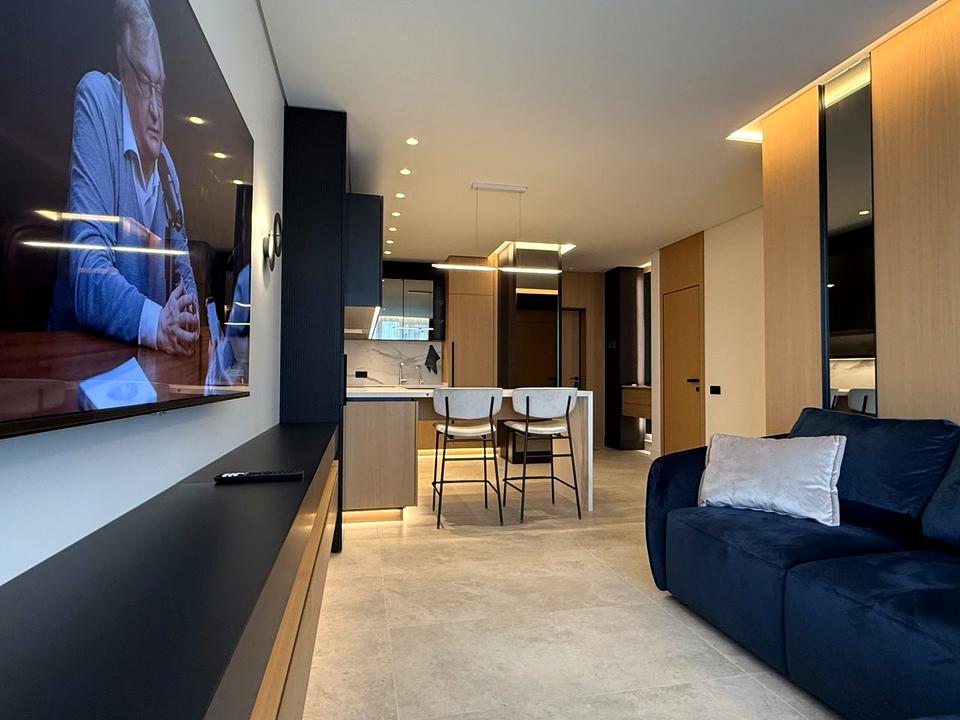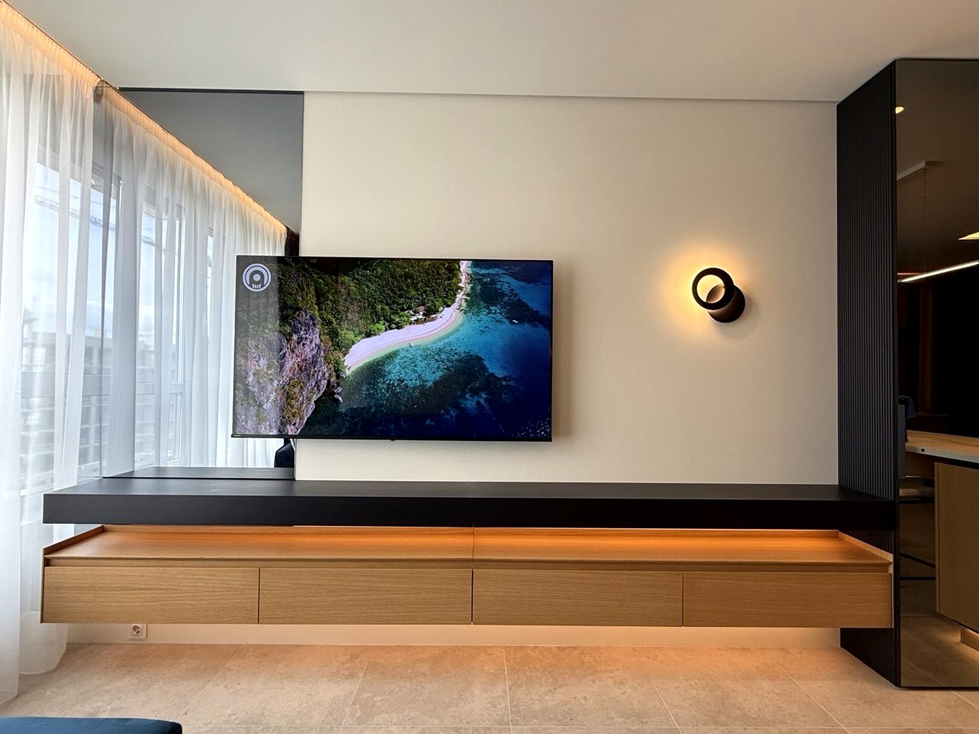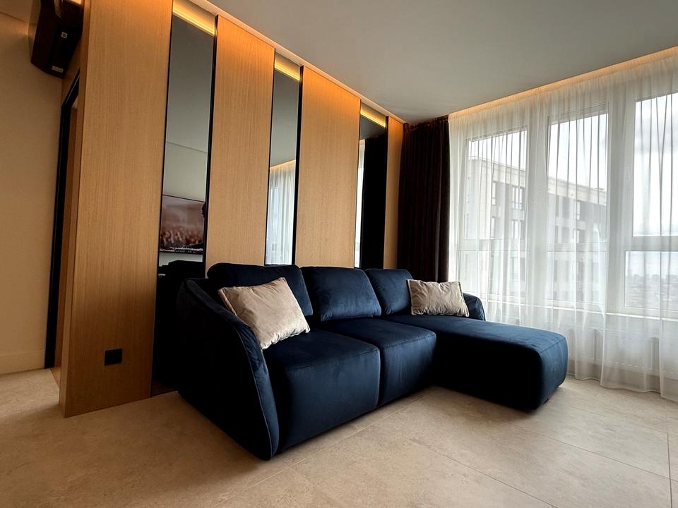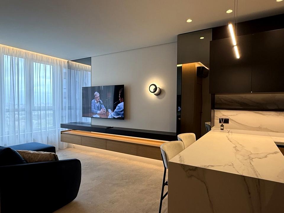 - Стильна студіо (25м2) зі зручним диваном, великим Smart-TV у цільному просторі з холом та кухнею;