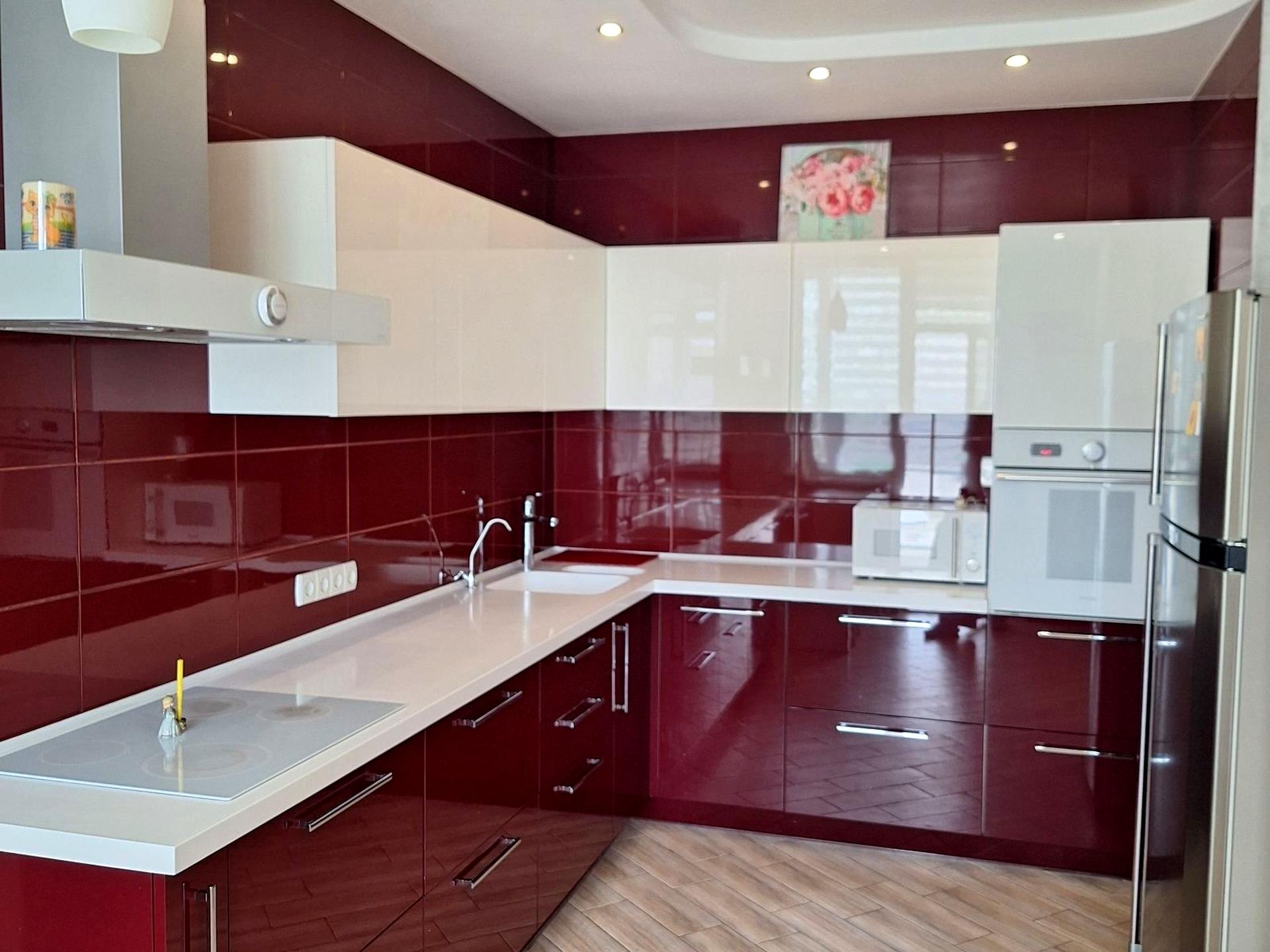 Квартира облаштована меблями, багато спальних місць. На кухні встановлено фільтр на воду(новий), є посудомийна машина, електрична плита, витяжка, духова шафа, мікрохвильова піч, великий холодильник, окрема морозильна камера, пральна машина /сушка.