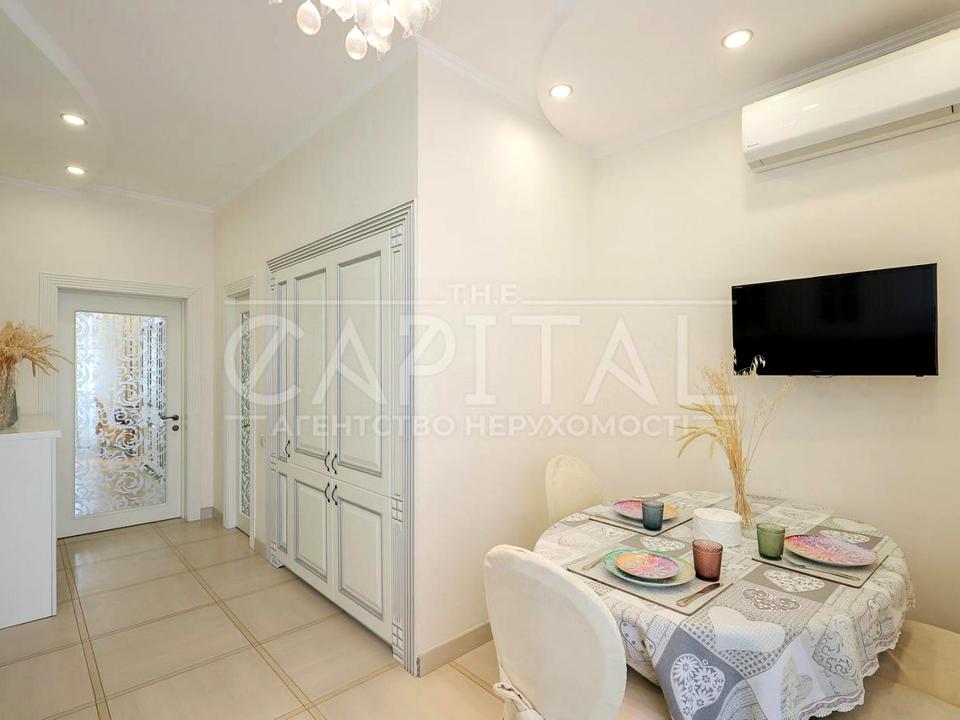 У квартирі виконано дорогий та якісний ремонт — робили для себе та підтримують у відмінному стані. Паркет, дерев’яні склопакети, італійські меблі з натурального дерева. Дивани трансформуються у повноцінні двоспальні ліжка.