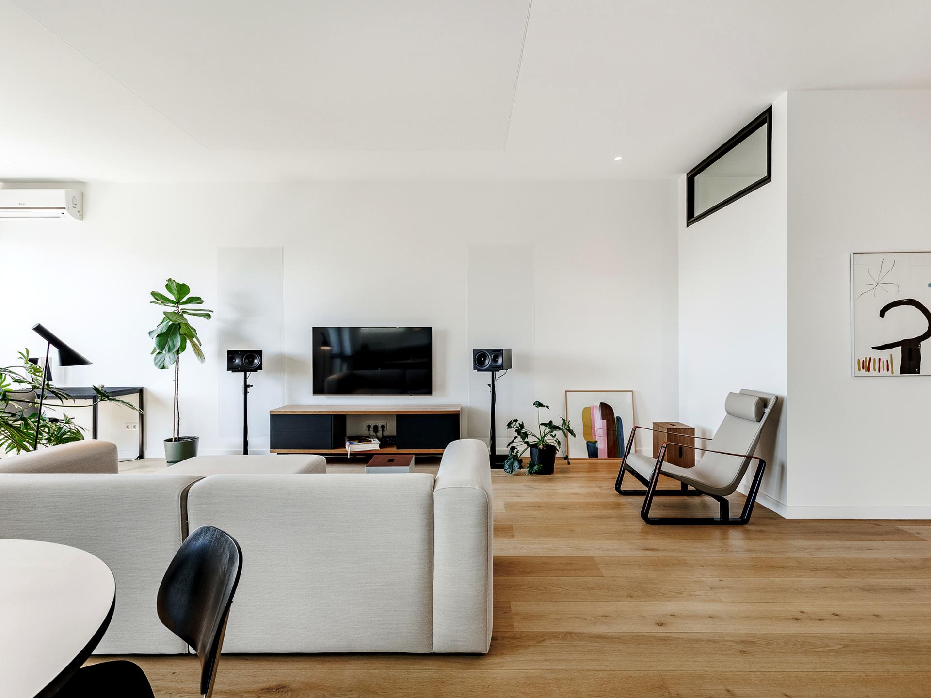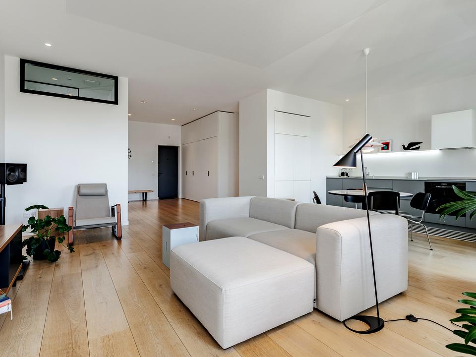 Квартира дуже світла і простора — за рахунок великих вікон на сонячну сторону та світлих стін.