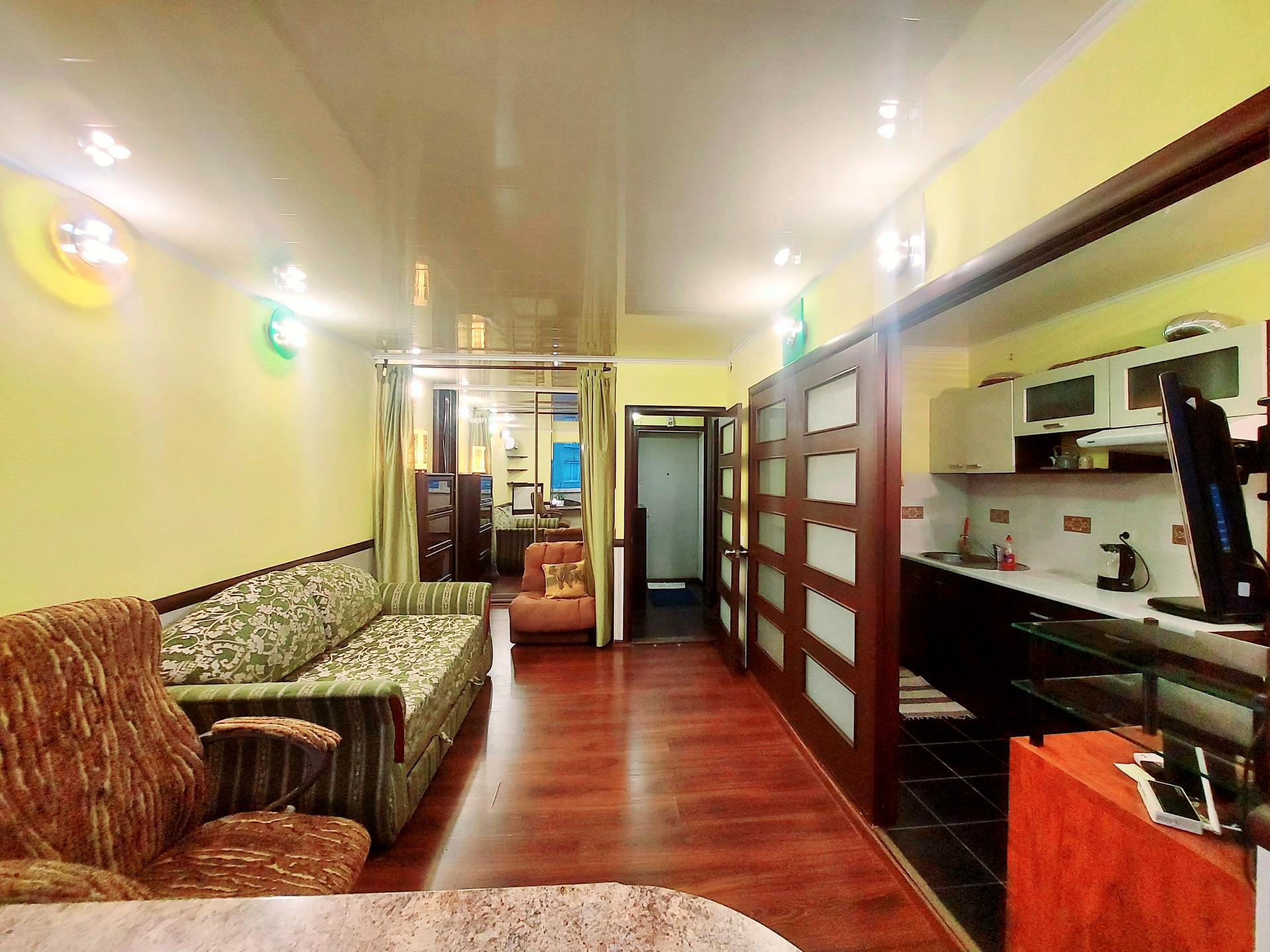 В квартирі 1 кімната, Технологія будівництва - Цегляна, Тип будинку - Гостинка. Планування кімнат Суміжне. Немає газу, кухонна плита електрична. Немає балкона. У квартирі є Телевізор, Кабельне ТБ, Праска, Кондиціонер, Пральна машина, Душова кабіна, Холодильник, Мікрохвильовка, Посуд, Сигналізація. Загальний стан квартири - З ремонтом. Безбар'єрність: пандус. Гаряча вода - електричний бойлер. Кількість санвузлів: 1. Інтернет дротовий (кабельний). Працює без світла - вода, газ, опалення, інтернет, ліфт. Тип кухні - кухня-студія. Кількість спален: 1