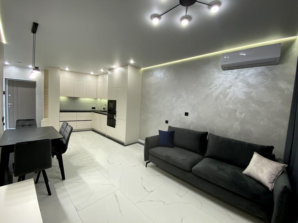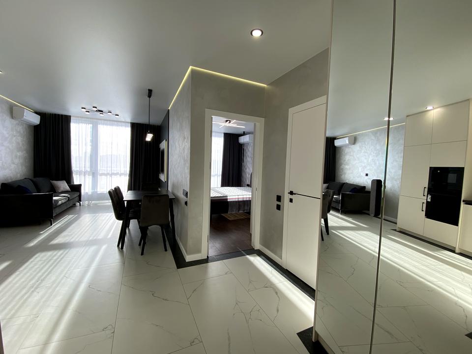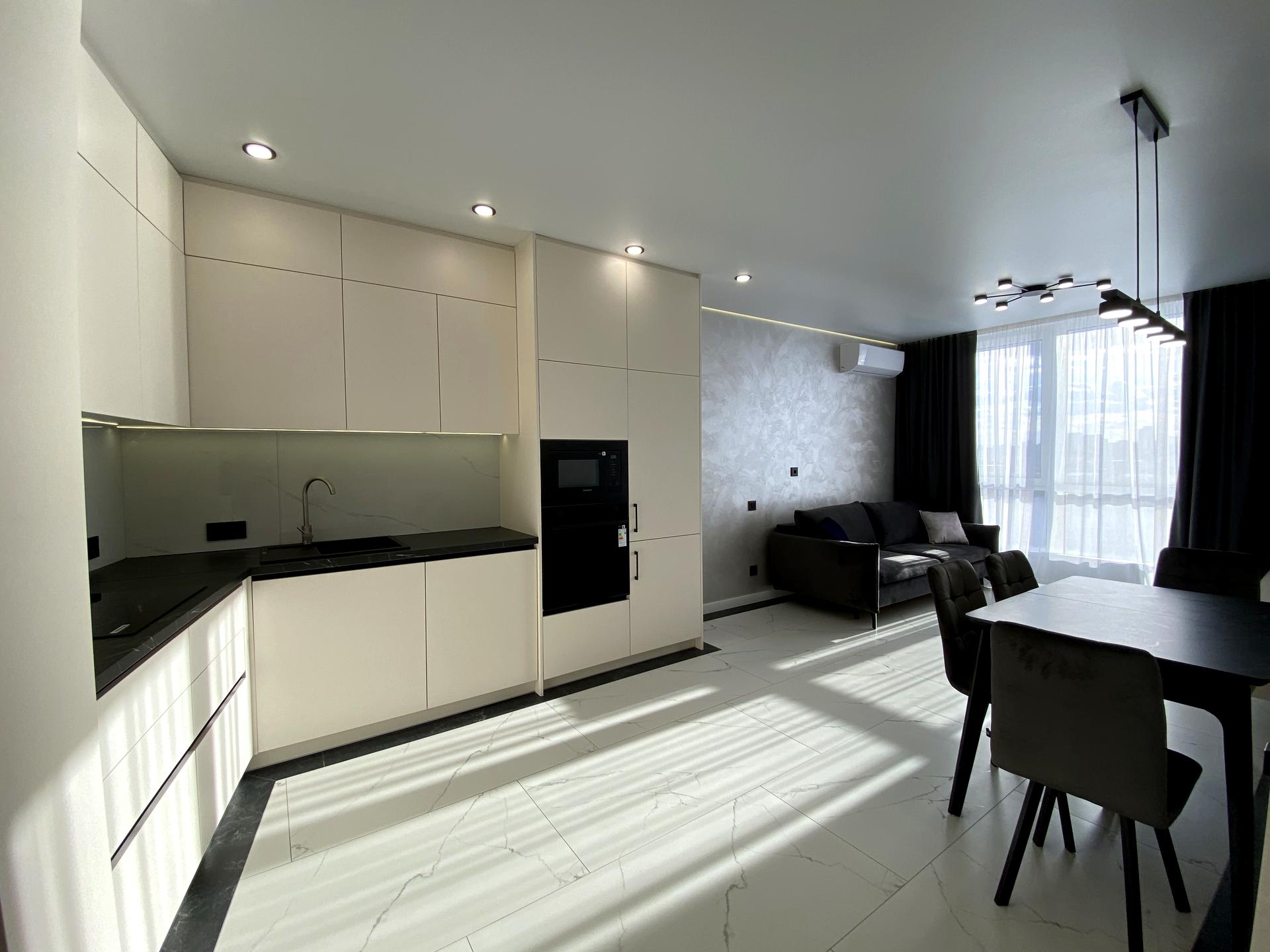 В квартирі 1 кімната, висота стелі 2.7 метра, Технологія будівництва - Цегляна, Тип будинку - Спец. проект. Кухонна плита електрична. У квартирі є Телевізор, Підігрів підлоги, Кондиціонер, Пральна машина, Душова кабіна, Холодильник, Мікрохвильовка, Посудомийна машина. Будинок побудований в 2023 році. Загальний стан квартири - З ремонтом. Гаряча вода - електричний бойлер. Кількість санвузлів: 1. Тип кухні - кухня-студія. Кількість спален: 1. Комісія за послуги 50 %