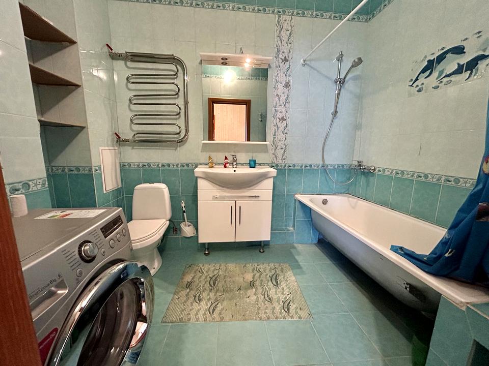 У санвузлах покладена сучасний кахель. Є ванна, унітаз, рукомийник, пральна машина, дзеркало.