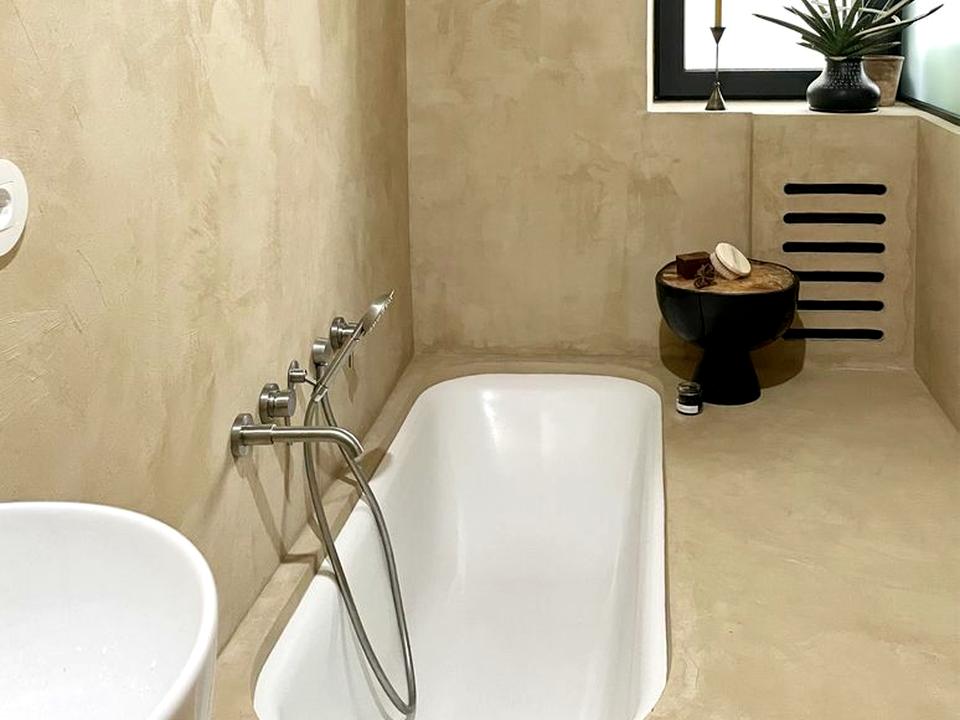 Ванна кімната з вікном, у теплих тонах, з піщаною фактурою, навіюватиме настрій Середземномор'я. Оздоблення кімнат у світлих відтінках, приємні натуральні фактури, створять відчуття гармонії та затишку.