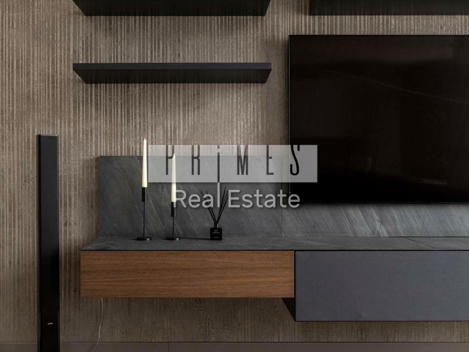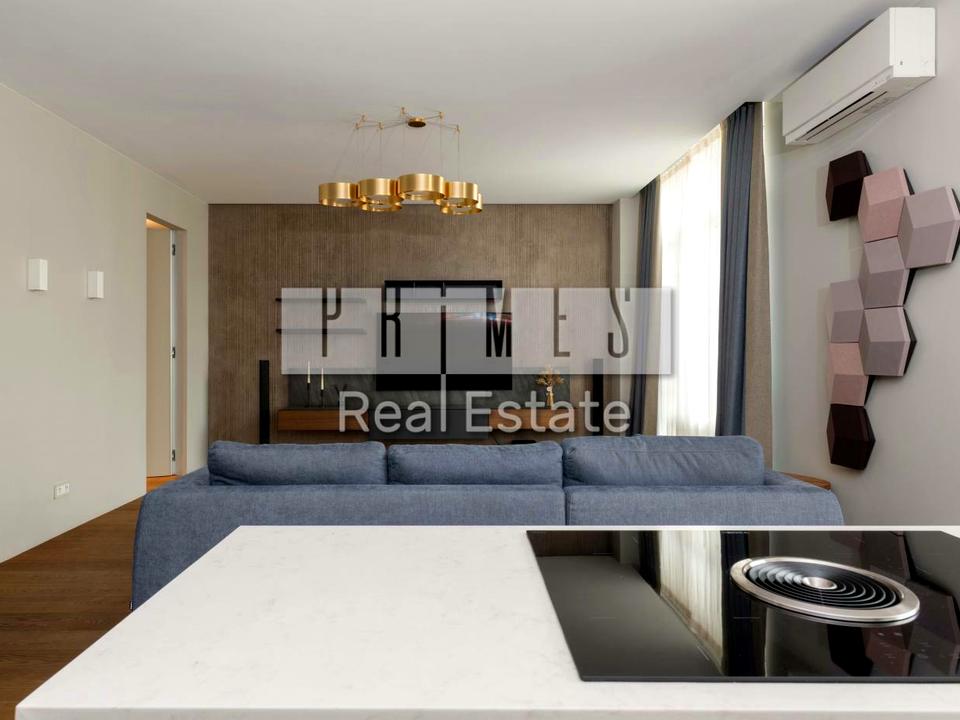 Інтер'єр пропонує вдало сплановане розташування кімнат: кухня-вітальна з захоплюючим видом через панорамні вікна, окрема кімната, гардеробна кімната з просторими шафами для зберігання, два санвузла.