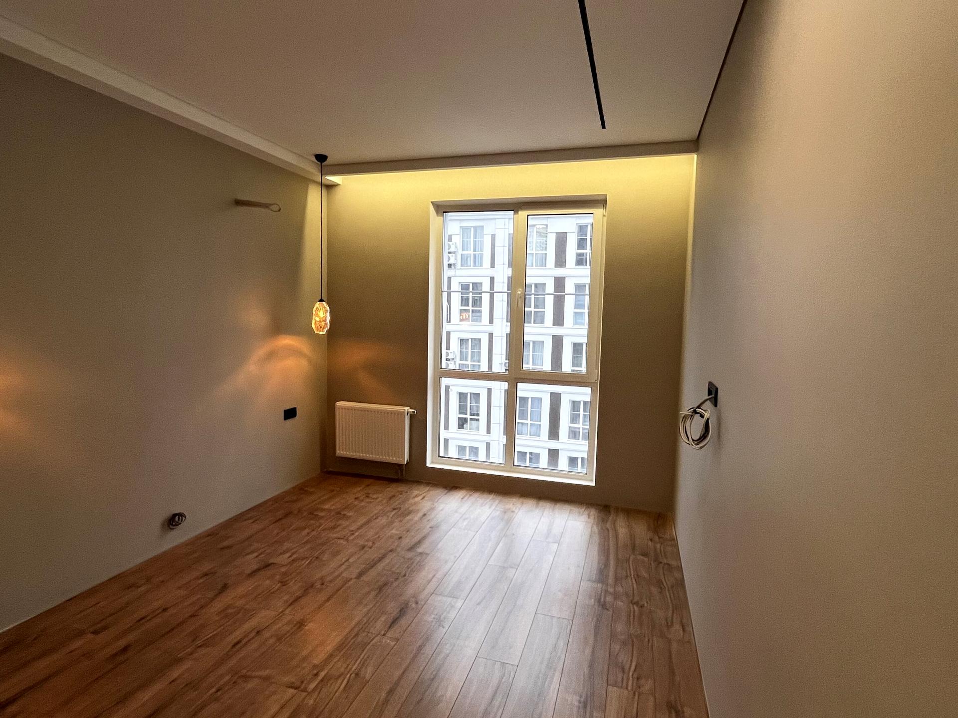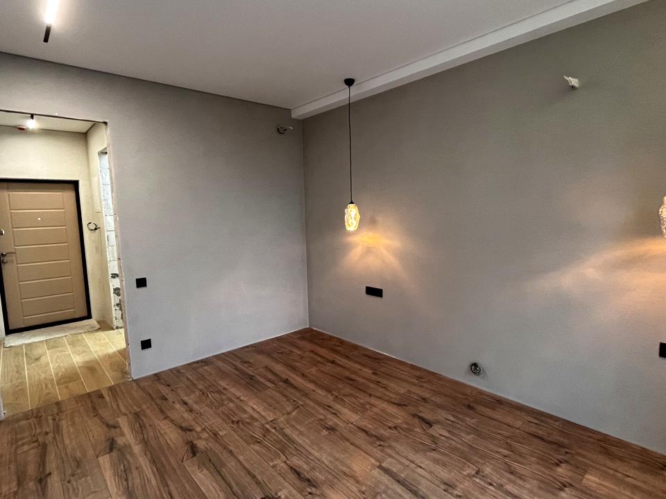 В квартирі виконано якісний ремонт: на стінах сучасна покраска, у кухні, коридорі та ванній плитка з підігрівом підлоги, у кімнаті ламінатна дошка