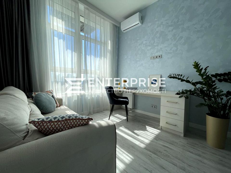 В квартирі 1 кімната, висота стелі 3.2 метра, Технологія будівництва - Монолітно-каркасна. Планування кімнат Роздільне. Немає газу. Немає балкона. У квартирі є Телевізор, Кабельне ТБ, Супутникове ТБ, Кондиціонер, Пральна машина, Душова кабіна, Холодильник, Посудомийна машина. Будинок побудований в 2018 році. Загальний стан квартири - З ремонтом. Безбар'єрність: вхід у будинок на рівні землі, дверні отвори в будинку шириною понад 0.9 м, ліфт, пристосований до крісла колісного. Гаряча вода - централізована. Кількість санвузлів: 1. Власник погоджується продати по програмі єОселя. Працює без світла - вода, опалення, інтернет, ліфт. Без комісії