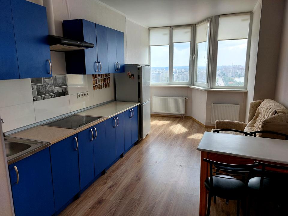 З 29 поверху відкриється великий вид на Дарницький масив лівого берега. Житлова кімната 26м2 з кондиціонером та телевізором, велика та простора. Кухня понад 13м2, вбудована кухня, холодильник, обідній стіл. Санвузол поєднаний, встановлена душова кабіна, бойлер, пральна машина. У коридорі дводверна шафа та шафа-купе. На опалення встановлено теплолічильник із регуляторами тепла, лічильник на воду та електрику. У будинку 4 ліфти, будинок повністю функціонує, працюють всі комунікації, ОСББ, парковка, консьєрж. У будинку супермаркет, спорткомплекс, багато господарсько-побутових магазинів. Поруч із будинком зупинки громадського транспорту, вартість 50000,00 у.о.