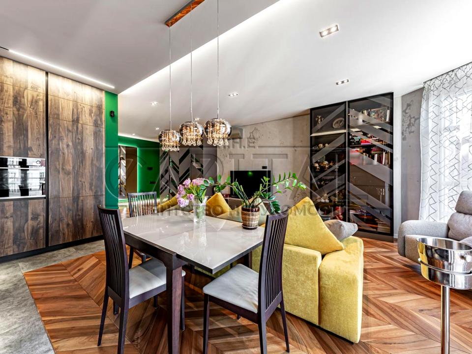 У ремонті використано високоякісні матеріали, зокрема італійську плитку від виробників Florim, Diesel, а також іспанську плитку від Venis. Уся техніка та меблі в квартирі від провідних світових виробників. Паркет з натурального дерева — горіха та в’язу. Стіни оброблені декоративною штукатуркою та покриті фарбою від італійського виробника San Marco. Квартира оснащена системою "Aquastop" для забезпечення захисту від протікання води.