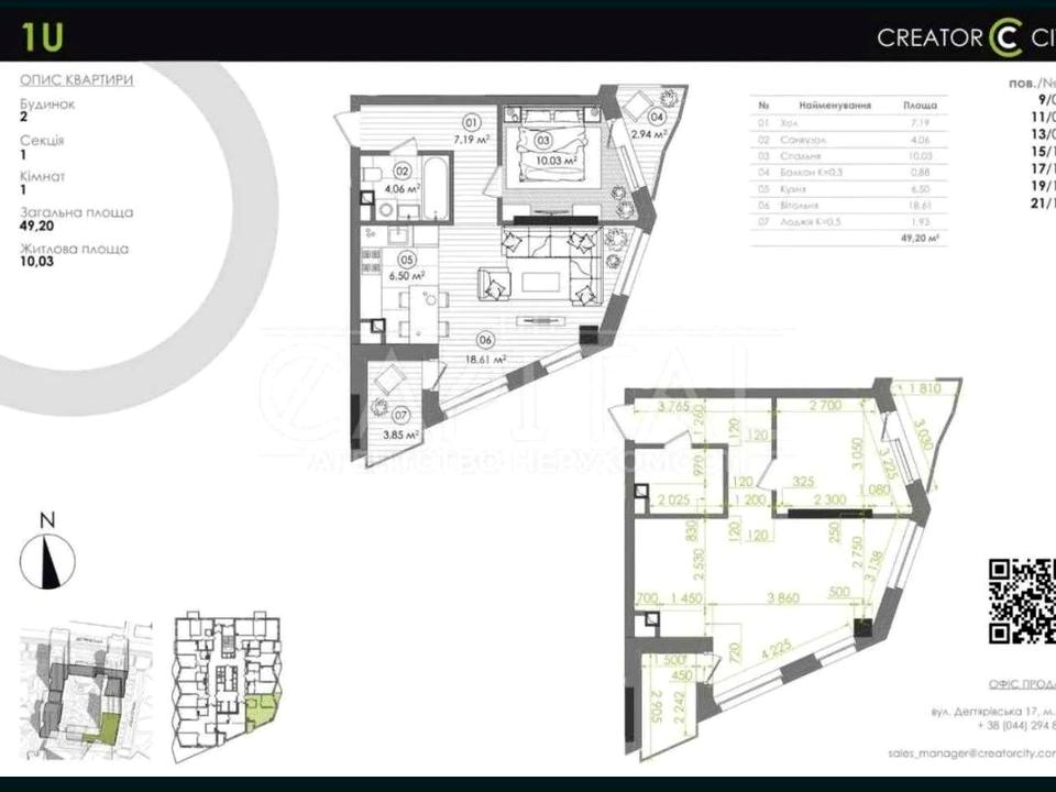 Площа квартири — 49,2 м², поверх — 21. Стан після будівельників.