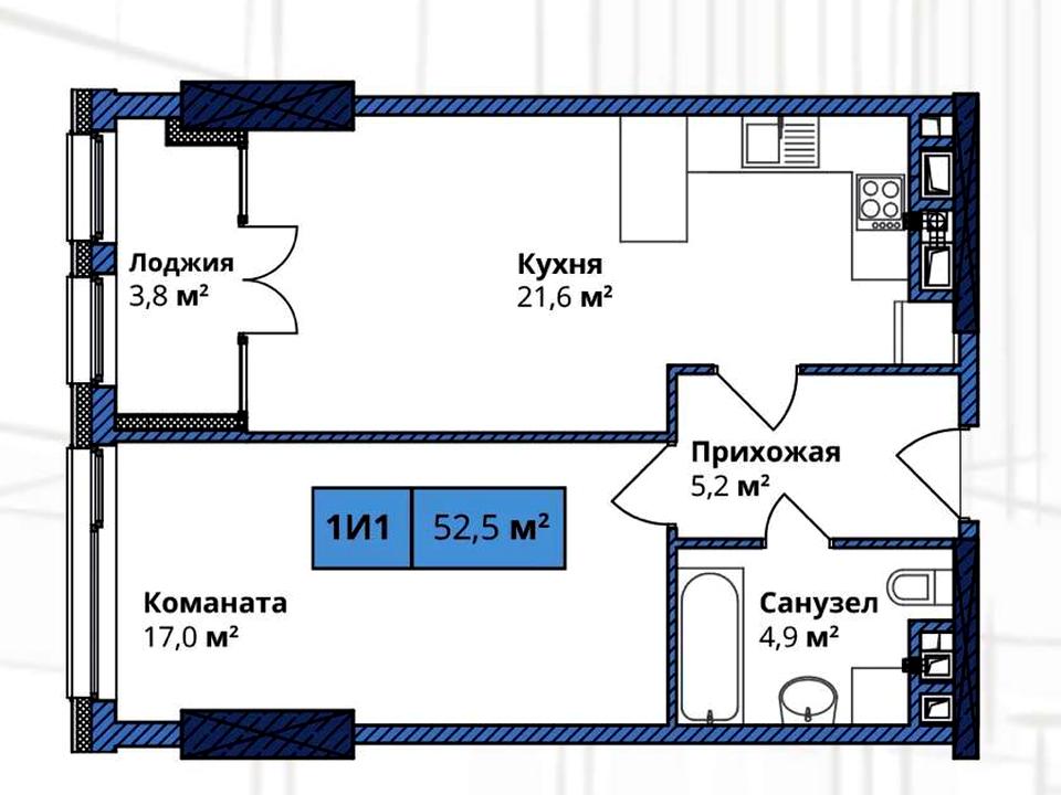 Євродвушка 53м2.