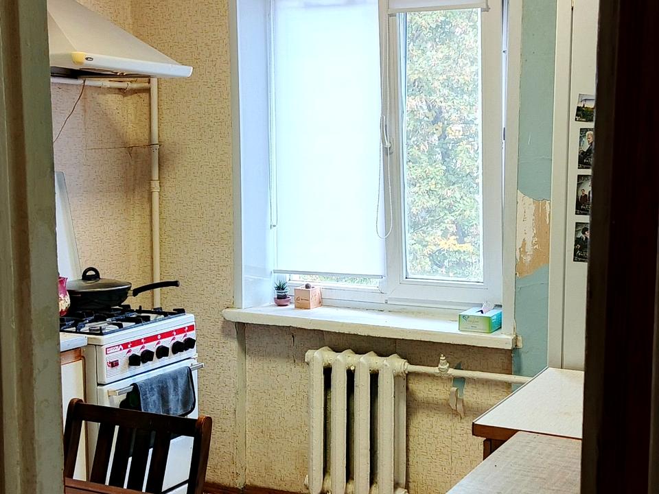 Відрадний проспект, 12, 5/5-пов. цегляного будинку, дах шатровий, є технічний поверх, 32/18/7 кв.м, санвузол суміщений, балкон засклений (склопакети). Не торцева.