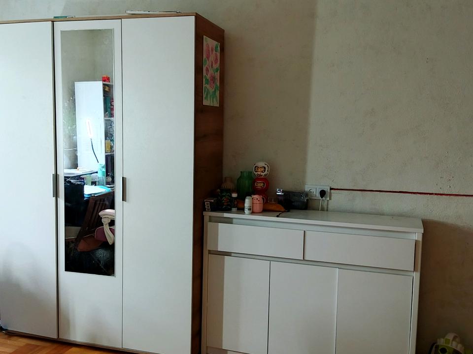 Стан житловий: м/п/вікна, паркет, проводка, сантехніка нова, труби нові. Треба поклеїти обої, бо старі. Меблі: секційна кухня, диван, корпусні меблі в кімнаті. Побутова техніка: двокамерний холодильник, витяжка, бойлер на 30 літрів, пральна машина- автомат. Броньовані двері, домофон. Лічильники на все. Квартира дуже тепла, під'їзд охайний, сусіди порядні.