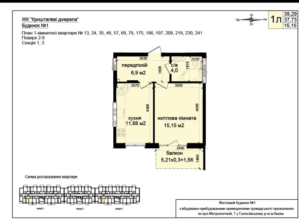 • Загальна площа квартири - 41м2 .