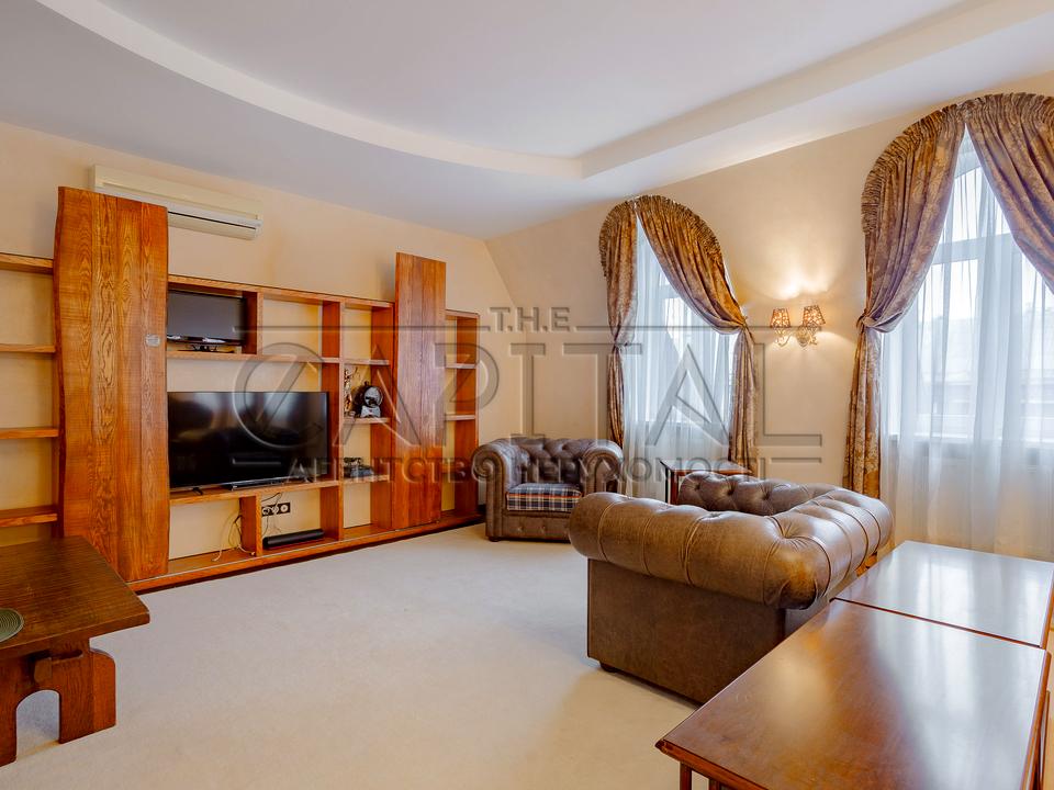 До продажу пропонується простора дворівнева трикімнатна квартира площею 140 м² у самому серці Києва — центральна частина Печерська, 4–5 поверхи царського будинку після реконструкції.