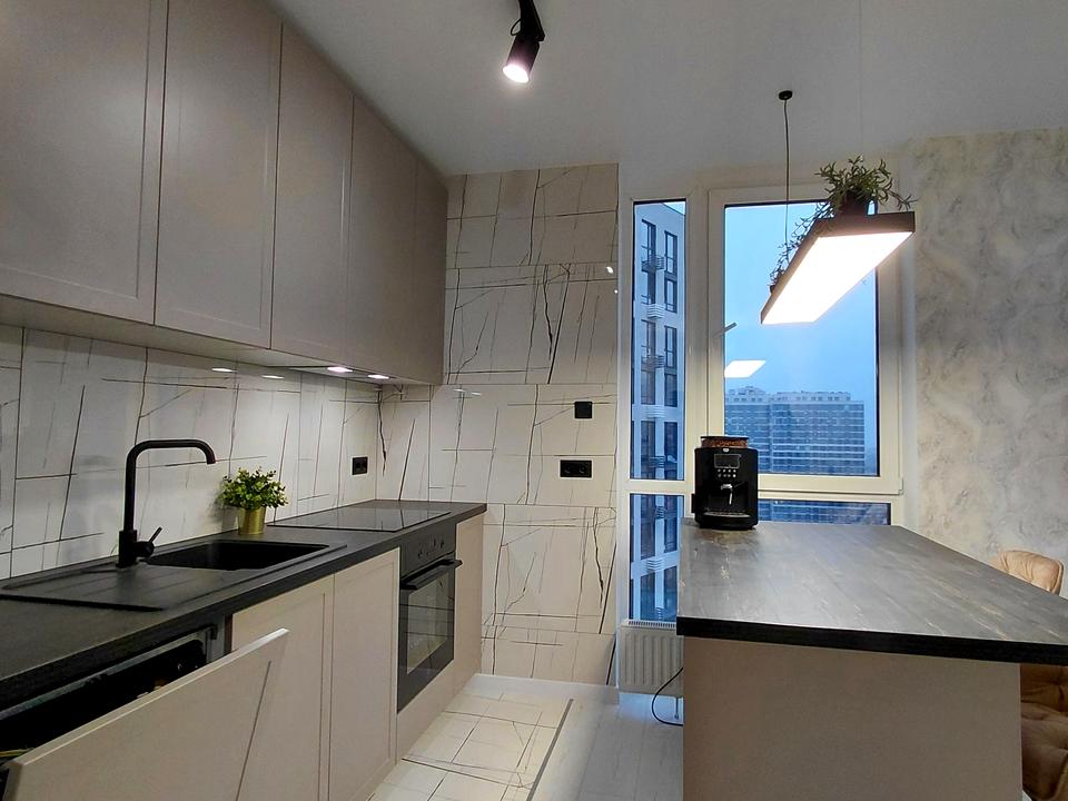 Дуже вдале планування - простора і світла кухня-вітальня + 2 спальні, сучасний ремонт з використанням якісних матеріалів.