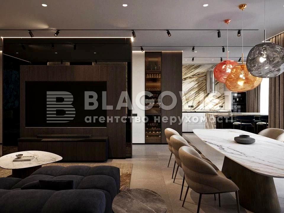 Простора кухня-студія, дві окремі спальні, кожна спальня має власну гардеробну. Квартира виконана за індивідуальним дизайн-проєктом, з використанням високоякісних матеріалів преміум-класу. Інтер'єр продуманий до дрібниць: сучасний, функіональний і водночас затишний. Меблі та техніка - виключно брендові, обрані з особливою увагою до стилю й якості