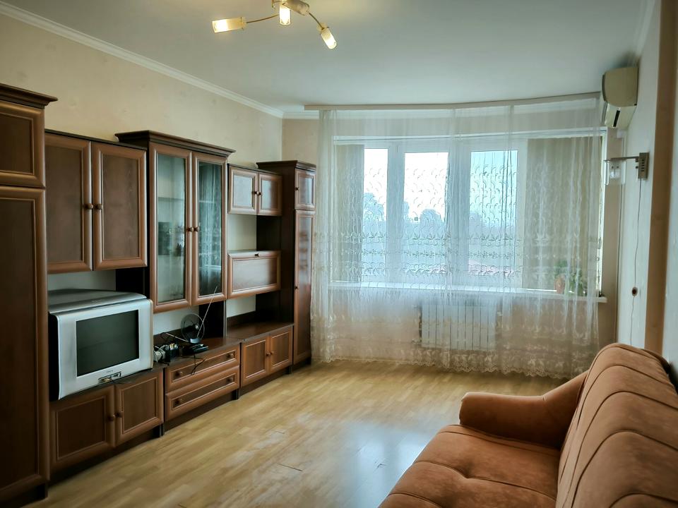 - велика кімната з кондиціонером, розкладним диваном і меблями;