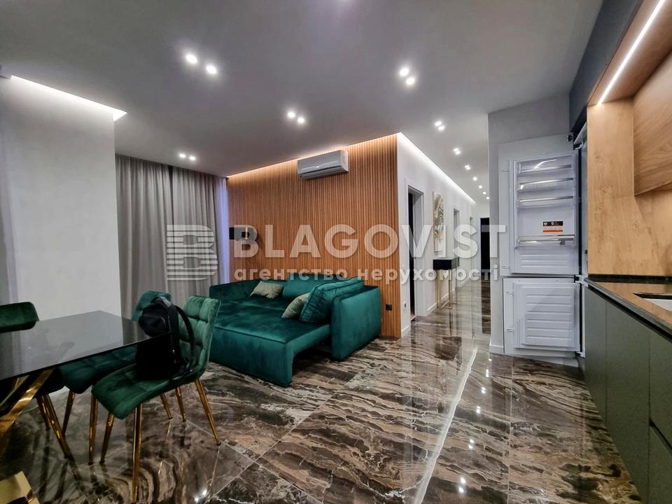 У квартирі 3 окремі спальні, кухня-вітальня, два санвузла та гардеробна кімната.з сучасним модерновим ремонтом. Спальня повністю, укомплектована меблями та технікою. Велика кухня з гранітною стільницею, мармуровою підлогою з підігрівом, вбудованою якісною технікою. В будинку Є укриття. Встановлений генератор на ліфти. Відмінна транспортна розв'язка, розвинена інфраструктура. Поряд метро Осокорки.