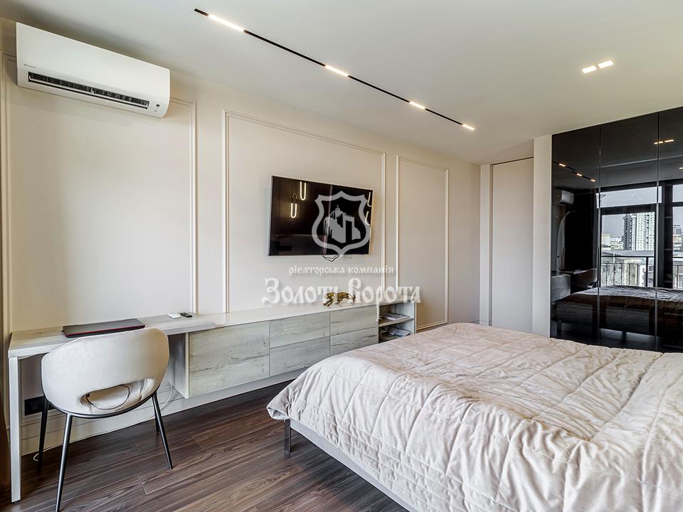 Планування квартири продумане до дрібниць: дві затишні спальні, простора кухня-вітальня, зручна гардеробна та стильний суміщений санвузол. Кожна деталь інтер'єру підкреслює ваш бездоганний смак та статус. Меблі, виготовлені з сучасних та якісних матеріалів, вбудована техніка створюють неповторну атмосферу вишуканості та затишку.